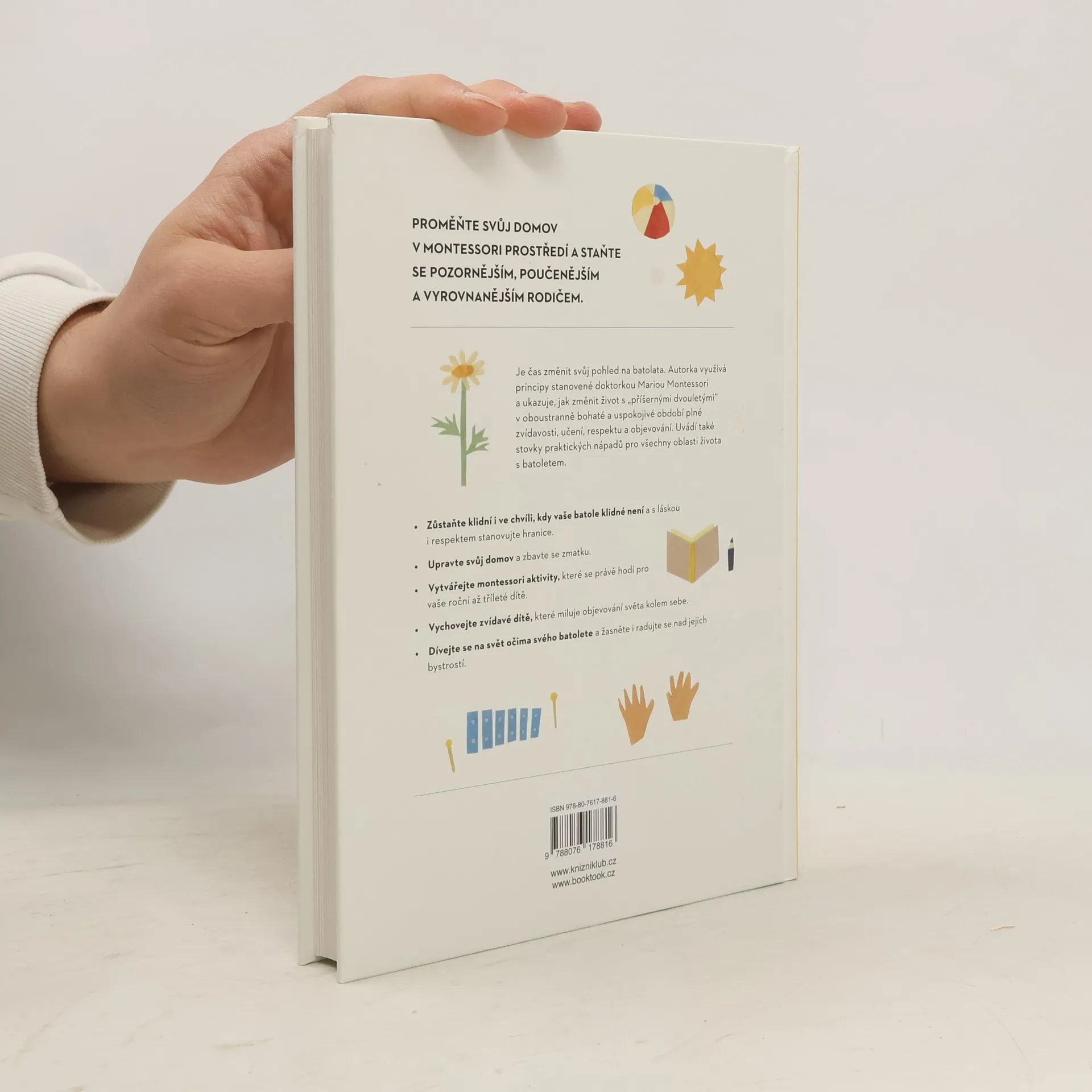 Srozumitelná a komplexní příručka k výchově batolat podle Montessori. Chcete najít způsob, jak si výchovu batolete víc užívat? Povzbuzovat svoje dítě k tomu, aby se rádo učilo? Dosáhnout toho, že dítě spolupracuje, aniž byste na něj křičeli, nebo se opakovali? Pak je tahle kniha pro vás to pravé. Montessori přístup vede děti k tomu, aby samy objevovaly svět vlastníma rukama a přebíraly odpovědnost, když je potřeba, zatímco dospělí fungují jako vedení. Tato kniha nabízí jednoduché, praktické rady, jak uplatnit zásady učení Montessori do každodenního života s dítětem ve věku do tří let.