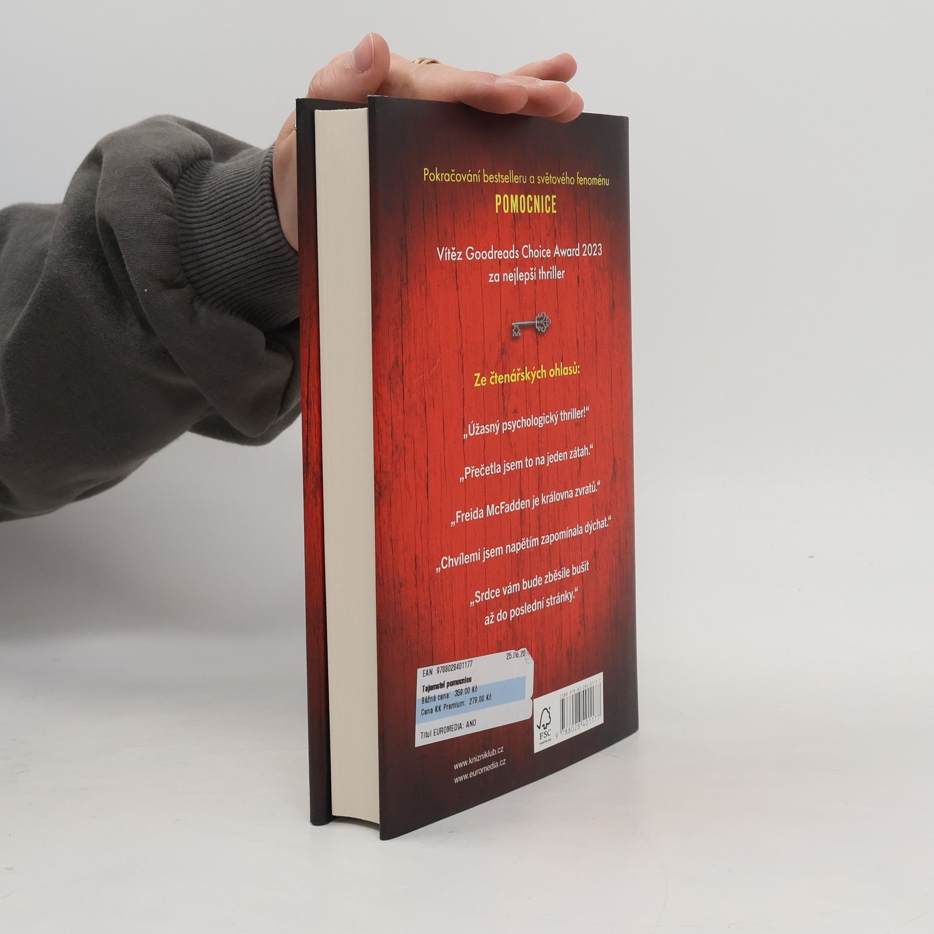 Pokračování bestselleru Pomocnice! Je těžké najít zaměstnavatele, který se nebude příliš vyptávat na mou minulost. A tak děkuji svým šťastným hvězdám, že jsem získala místo u Garrickových. Chvíli tu můžu v klidu pracovat, dokud nedostanu, co chci. Je to téměř dokonalé. Jenže jsem se pořád ještě nesetkala s paní Garrickovou ani se nepodívala do pokoje pro hosty. Jsem si jistá, že ji tam slýchávám plakat. Při praní prádla si taky všimnu skvrn od krve kolem límečku její noční košile. Takže si jednoho dne už nemůžu pomoct a na dveře zaklepu. Jakmile se pomalu otevřou, spatřím za nimi něco, co všechno změní…