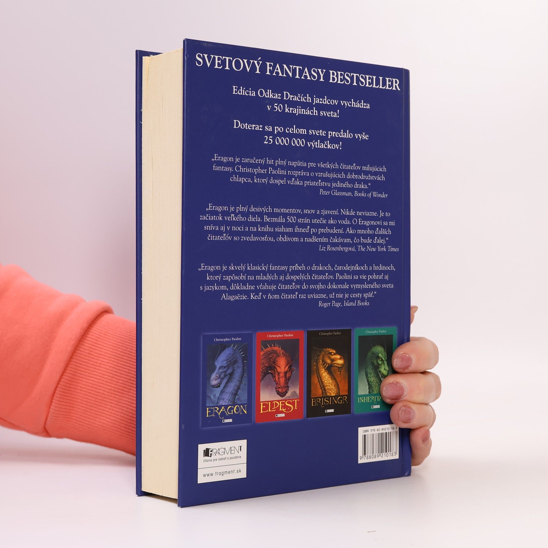 Keď Eragon nájde v lese naleštený modrý kameň, myslí si, že chudobného farmárskeho chlapca stretlo šťastie. Ale z kameňa sa vykľuje dračie mláďa. Eragon si uvedomí, že narazil na odkaz skoro tak starý ako je samé Kráľovstvo. Jeho jednoduchý život sa cez noc zmení a on je vtiahnutý do nového, nebezpečného sveta osudu, kúziel a moci. Prvý diel trilógie - Odkaz Dračích jazdcov