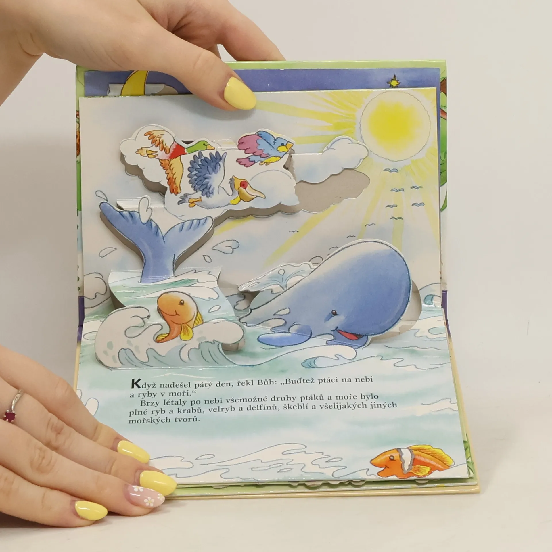 První leporelo ze série Malá biblická dějeprava představuje pomocí rozkládacích obrázků a stručných popisků stvoření světa.