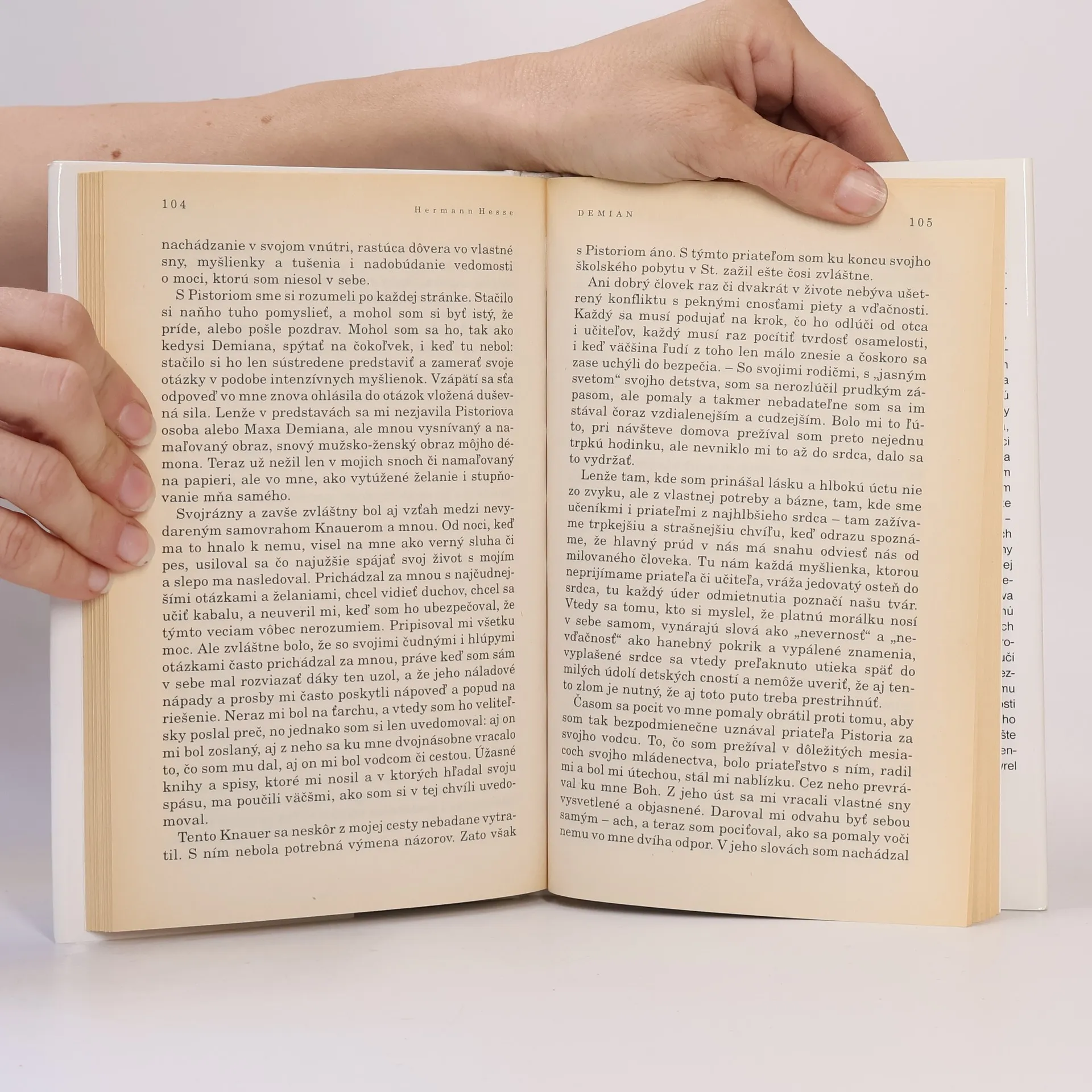 Román Demian patrí k najvýznačnejším Hesseho dielam. Jeho hlavný hrdina Emil Sinclair si ako desaťročný po prvýkrát uvedomuje rozporuplnosť života. Bezpečie rodičovského domu, v ktorom však vládne dusná malomeštiacka atmosféra, chlapca neuspokojuje - oveľa väčšmi ho pritahuje neznámy "temný svet" tých, ktorí nepatria k "dobrej spoločnosti", lebo sľubuje vzrušenie a hriešne dobrodružstvá.