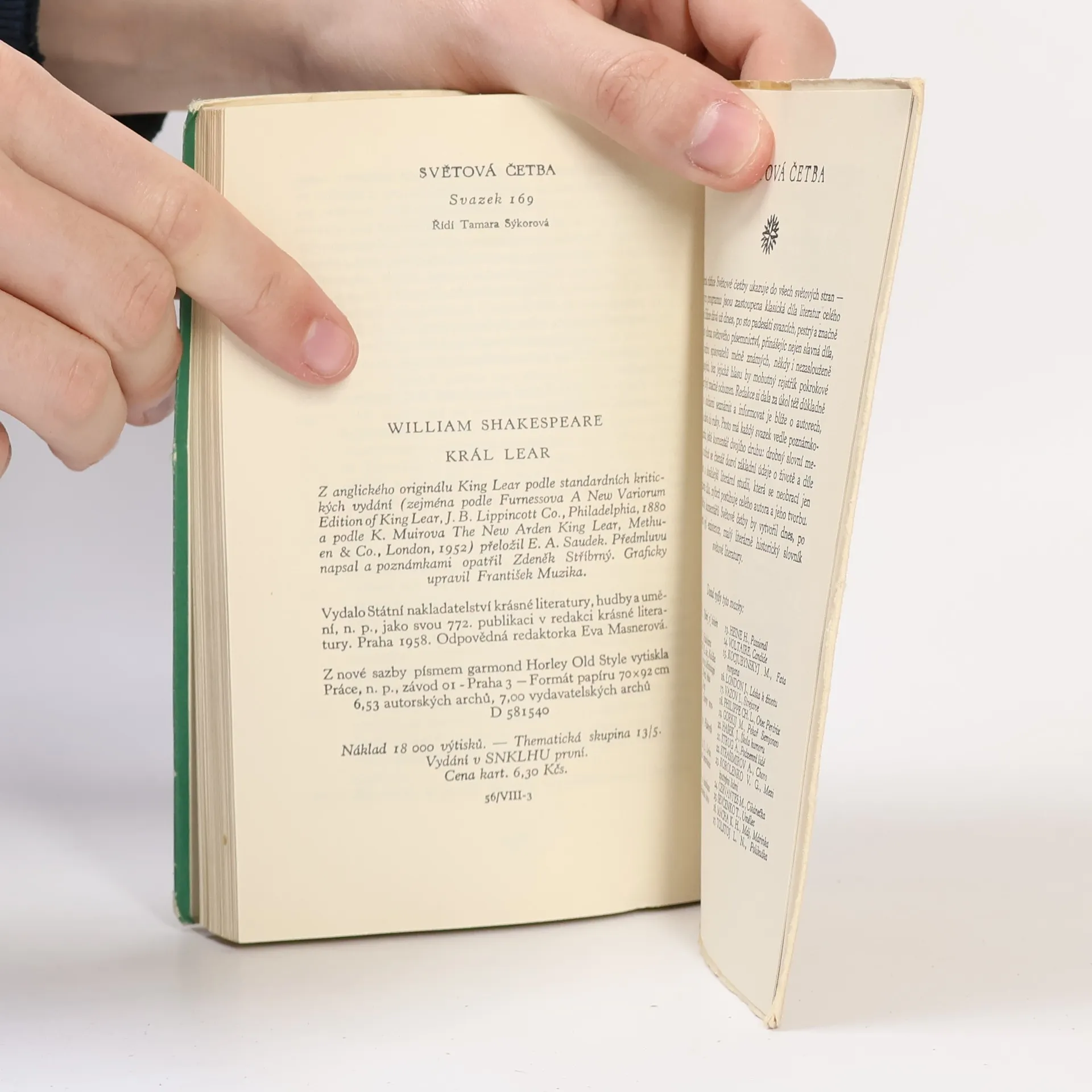 Král Lear je bezpochyby jednou z největších Shakespearových tragédií. Největší proto, že všechno dění a lidské konání v ní probíhá na obrovských pláních země i nebe. Několik postav v ní přehrává drama lidského údělu. Je to hra velmi konkrétní, fyzický detail v ní hraje mimořádnou roli, zároveň hra univerzální, hra o světě, který se otřásá v základech, hra, v níž se hroutí všechny tradiční hodnoty, hra vizionářská a apokalyptická. V samém srdci této Shakespearovy tragédie je obraz poutníka a cesty. Geograficky vzato putuje Lear ze svého sídla do Doveru. Ale jako každá cesta poutníka i Learova pouť má ještě jiný, daleko důležitější rozměr. Lear putuje z královského paláce do pusté přírody, od svých dcer Regan a Goneril ke Kordelii, od pýchy k pokoře, od panovačné a autoritářské sebestřednosti k soucitu a odpuštění, od koruny ze zlata, symbolu slávy, bohatství a moci. Předmluvu napsal a poznámkami opatřil Zdeněk Stříbrný.