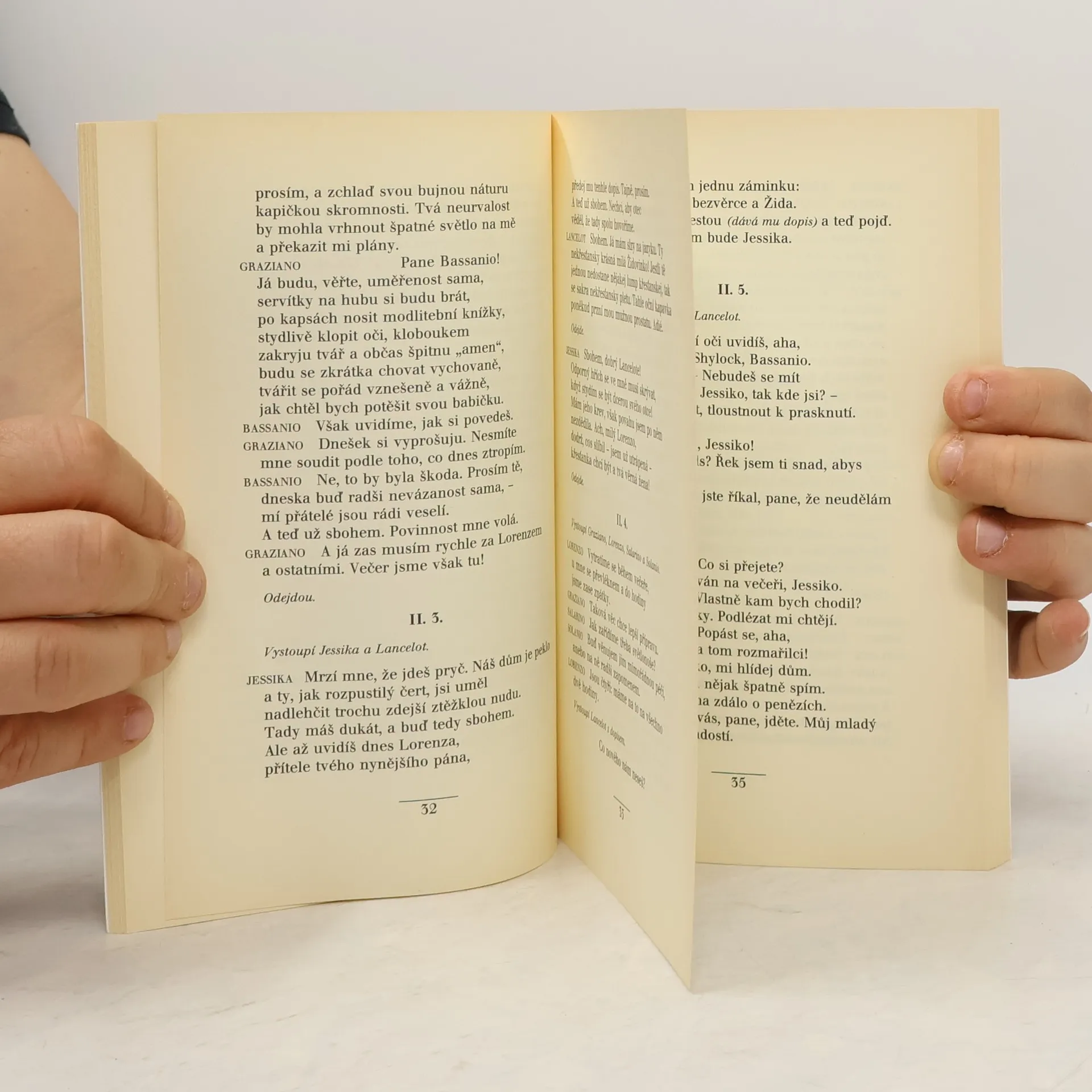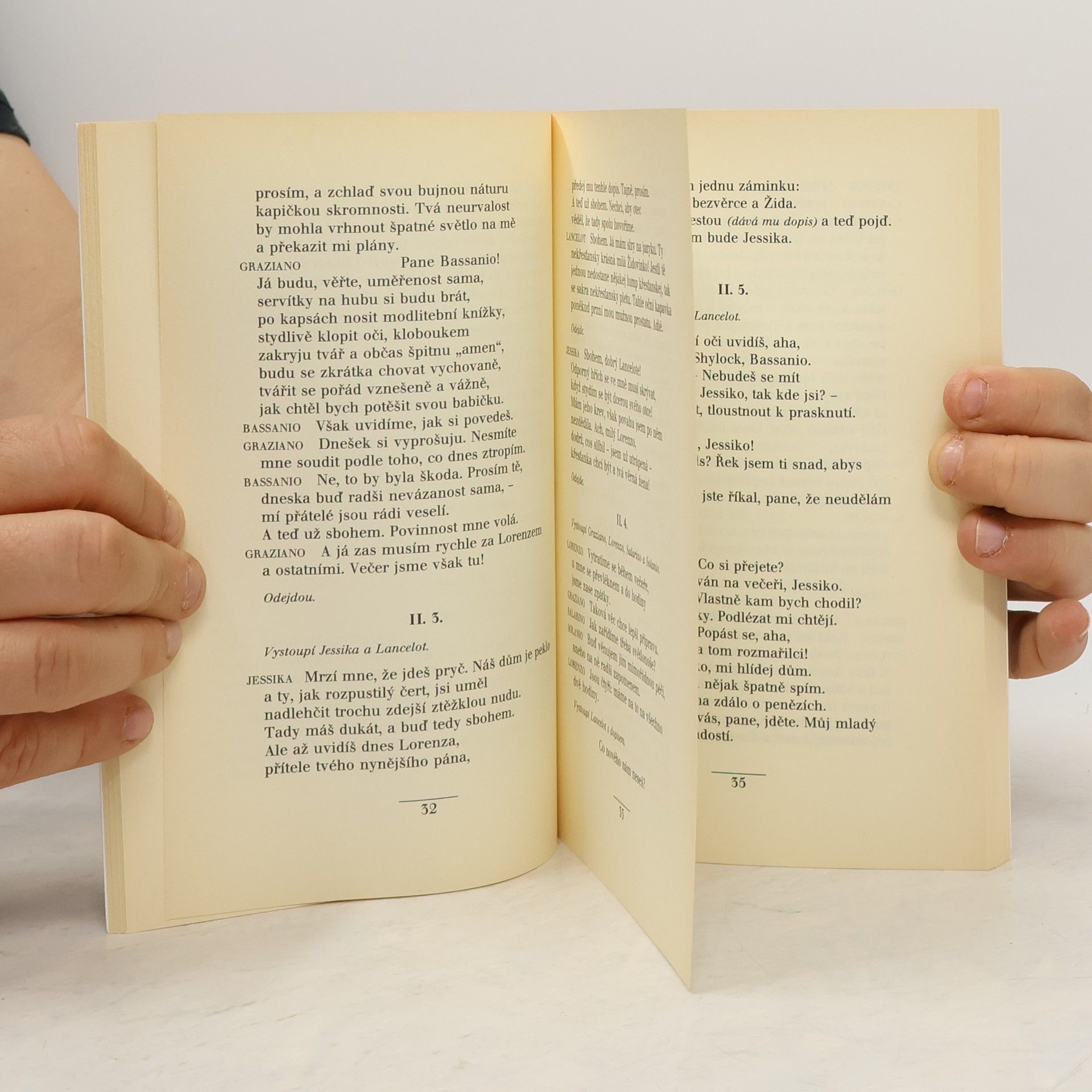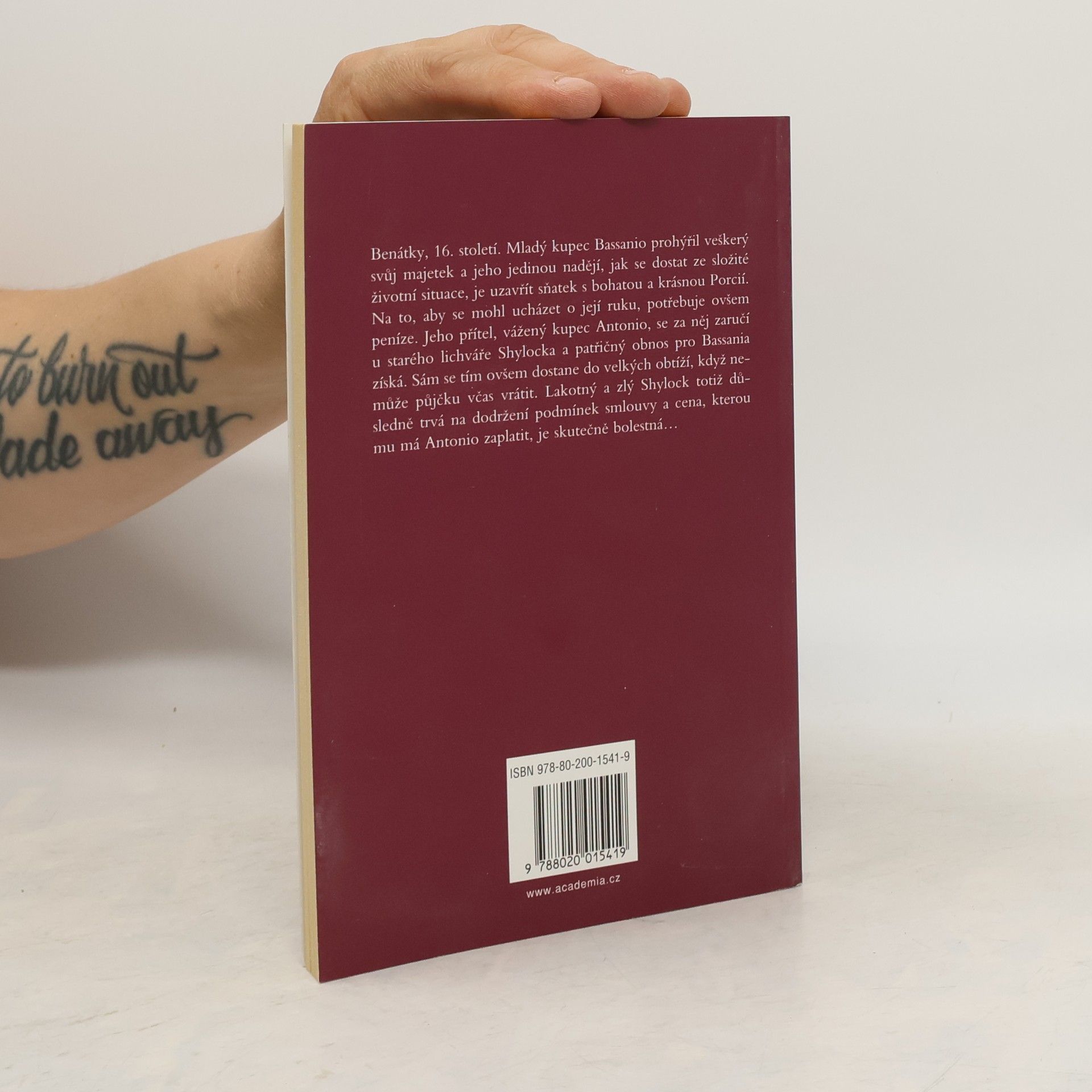Benátky, 16. století. Mladý kupec Bassanio prohýřil veškerý svůj majetek a jeho jedinou nadějí, jak se dostat ze složité životní situace, je uzavřít sňatek s bohatou a krásnou Porcií. Na to, aby se mohl ucházet o její ruku, potřebuje ovšem peníze. Jeho přítel, vážený kupec Antonio, se za něj zaručí u starého lichváře Shylocka a patřičný obnos pro Bassania získá. Sám se tím ovšem dostane do velkých obtíží, když nemůže půjčku včas vrátit. Lakotný a zlý Shylock totiž důsledně trvá na dodržení podmínek smlouvy a cena, kterou mu má Antonio zaplatit, je skutečně bolestná… Přeložil Martin Hilský. Vydavatel: Academia - Praha