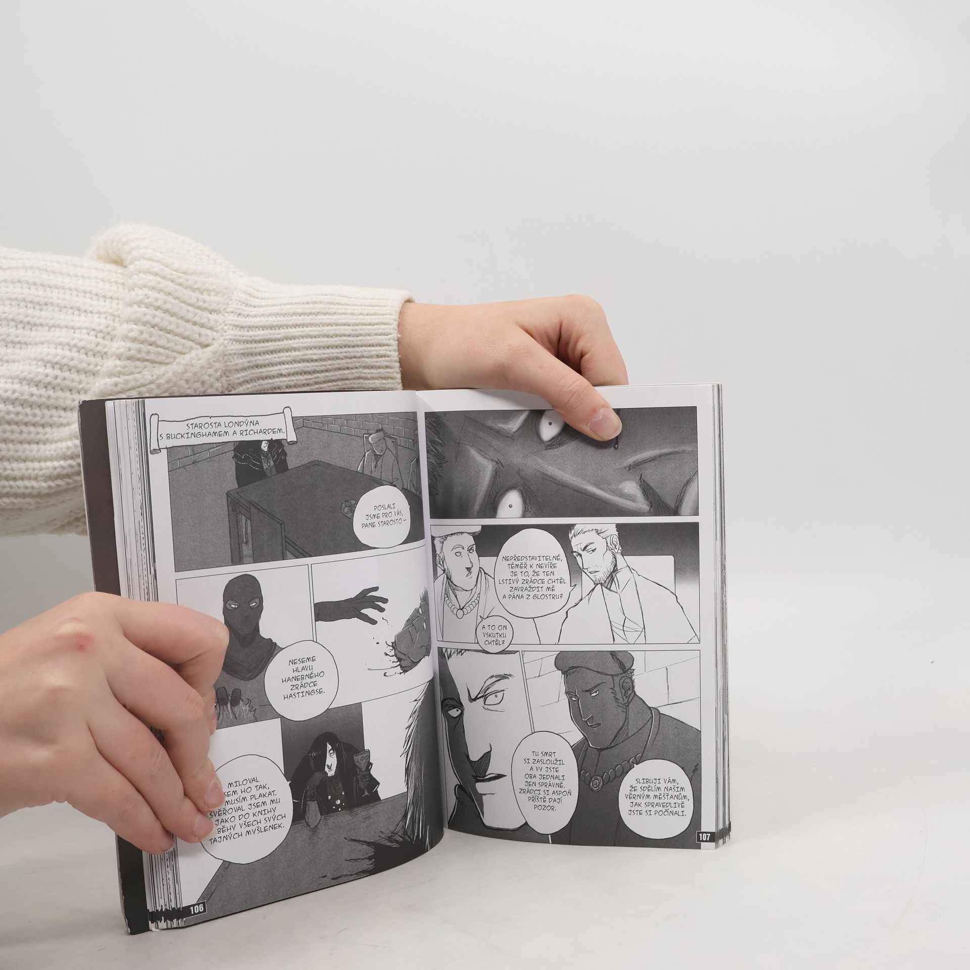 „Já předurčen byl stát se zločincem," prohlašuje vévoda z Glostru ve chvíli, kdy se chystá vztáhnout ruku po anglické koruně a stát se králem Richardem III. Tato adaptace propojuje klasický shakespearovský jazyk v brilantním překladu Martina Hilského s moderním, dynamickým grafickým stylem japonského komiksu - mangy. Patrick Warren, přední britský manga ilustrátor, ponechává Richardův příběh v původních kulisách středověké Anglie, ale dodává mu ryze dnešní atmosféru; temný, gotický středověk působí v jeho výtvarném podání navýsost aktuálně. Taková aktuálnost je ostatně na místě, protože dramatický příběh Richarda III. se v různých obměnách odehrává v každé době nanovo; v každé době se objeví nějaký ten tyran, který při své cestě na vrchol bezohledně likviduje vše, co mu stojí v cestě... Richard III. je druhou knihou z edice Manga Shakespeare, která - jak už název napovídá - představuje dílo největšího světového dramatika a básníka prostřednictvím japonské mangy. Důraz ovšem neklade jen na vizuální styl, ale dbá i na krásu Shakespearova jazyka a na citlivé dramaturgické zpracování každé Shakespearovy hry. Edici Manga Shakespeare tak ocení všichni, kteří se chtějí seznámit s nádherně barevným, krutým i laskavým světem Shakespearových her, ale bojí se kvůli tomu zajít do divadla či sáhnout po „pouhém" neilustrovaném textu.