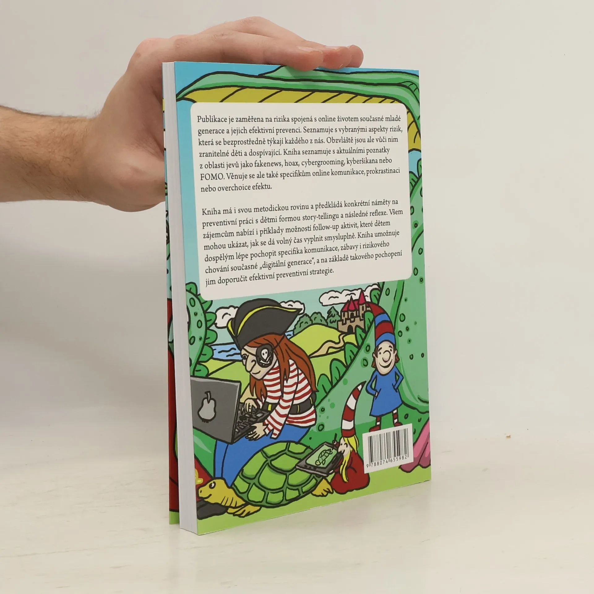 Průvodce online světem v edukačních a preventivních souvislostech Publikace je zaměřena na rizika spojená s online životem současné mladé generace a na jejich efektivní prevenci. Seznamuje s vybranými aspekty rizik, která se bezprostředně týkají každého z nás. Obzvláště jsou ale vůčinim zranitelné děti a dospívající. Přináší aktuální poznatky z oblasti jevů jako fake news, hoax, cybergrooming, kyberšikana nebo FoMo. Věnuje se ale také specifikům online komunikace, prokrastinaci nebo overchoice efektu. Publikace má i svou metodickou rovinu a předkládá konkrétní náměty na preventivní práci s dětmi formou story-tellingu a následné reflexe. Všem zájemcům nabízí i příklady možností follow-up aktivit, které dětem mohou ukázat, jak se dá volný čas vyplnit smysluplně. Umožňuje dospělým lépe pochopit specifika komunikace, zábavy i rizikového chování současné "digitální generace", a na základě takového pochopení dětem doporučit efektivní preventivní strategie.