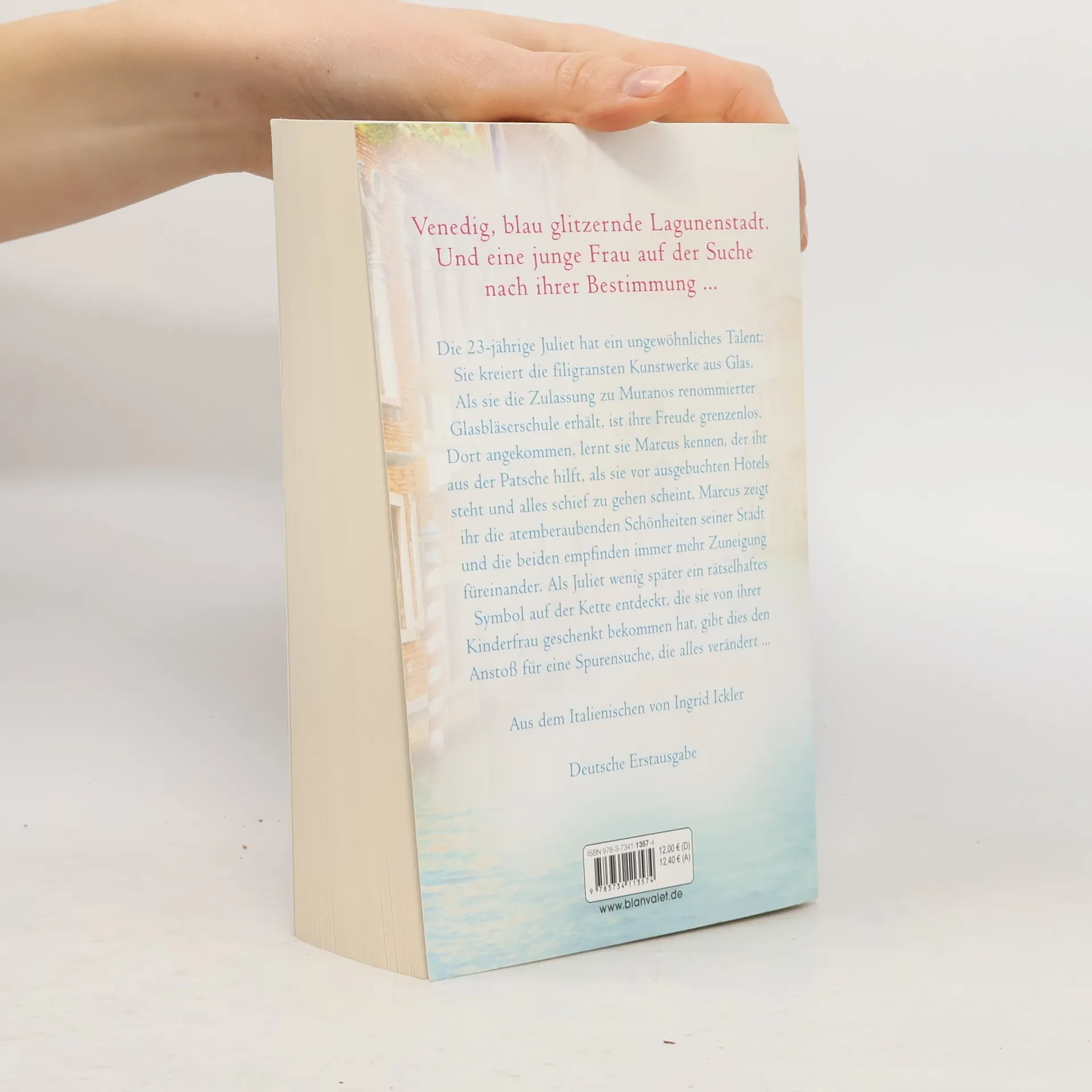 Venedig, blau glitzernde Lagunenstadt. Eine junge Frau auf der Suche nach ihrer Bestimmung. Und ein Geheimnis, das darauf wartet, ans Licht zu kommen ... Die 23-jährige Juliet hat ein ungewöhnliches Talent: Sie kreiert die filigransten Kunstwerke aus Glas. Als sie die Zulassung zu Muranos renommierter Glasbläserschule erhält, ist ihre Freude grenzenlos. Dort angekommen, lernt sie Marcus kennen, der ihr aus der Patsche hilft, als sie vor ausgebuchten Hotels steht und alles schief zu gehen scheint. Marcus zeigt ihr die atemberaubenden Schönheiten seiner Stadt entlang der glitzernden Wasserstraßen, und die beiden empfinden immer mehr Zuneigung füreinander. Als Juliet wenig später ein rätselhaftes Symbol auf der Kette entdeckt, die sie von ihrer Kinderfrau geschenkt bekommen hat, gibt dies den Anstoß für eine Spurensuche, die alles verändert … Mehr sommerliche Wohlfühlromane vor der traumhaften Kulisse Italiens von Cristina Caboni: Die Gartenvilla Die Glücksmalerin Die Insel der Honigtöchter