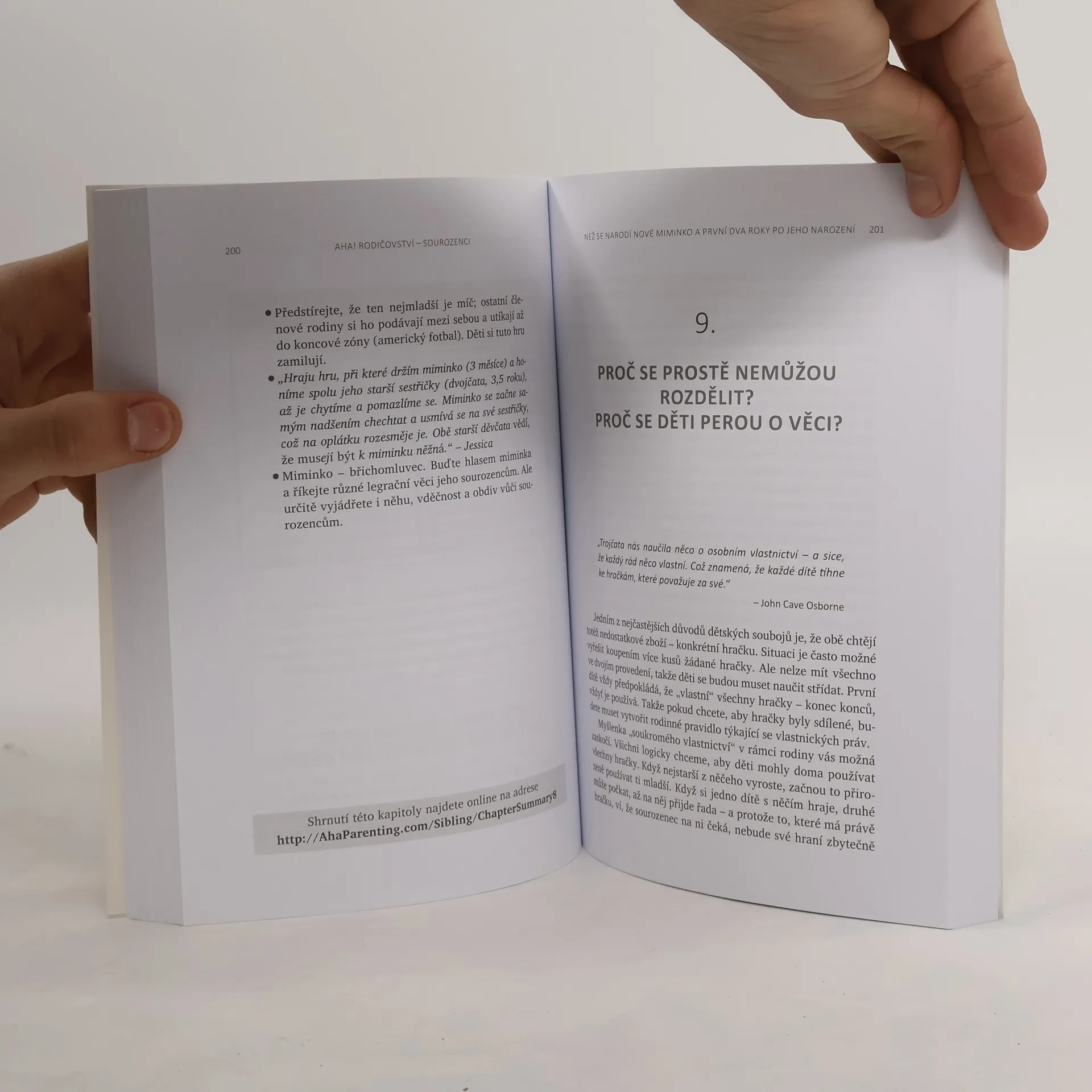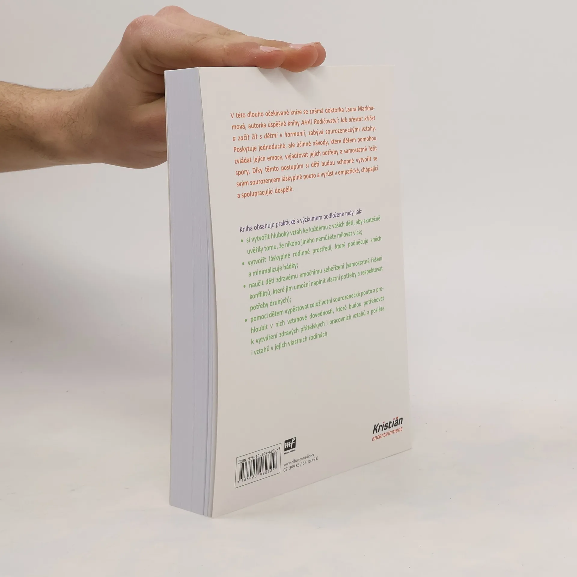 V této dlouho očekávané knize se známá doktorka Laura Markhamová, autorka úspěšné knihy AHA! Rodičovství: Jak přestat křičet a začít žít s dětmi v harmonii, zabývá sourozeneckými vztahy. Poskytuje jednoduché, ale účinné návody, které dětem pomohou zvládat jejich emoce, vyjadřovat jejich potřeby a samostatně řešit spory. Díky těmto postupům si děti budou schopné vytvořit se svým sourozencem láskyplné pouto a vyrůst v empatické, chápající a spolupracující dospělé.