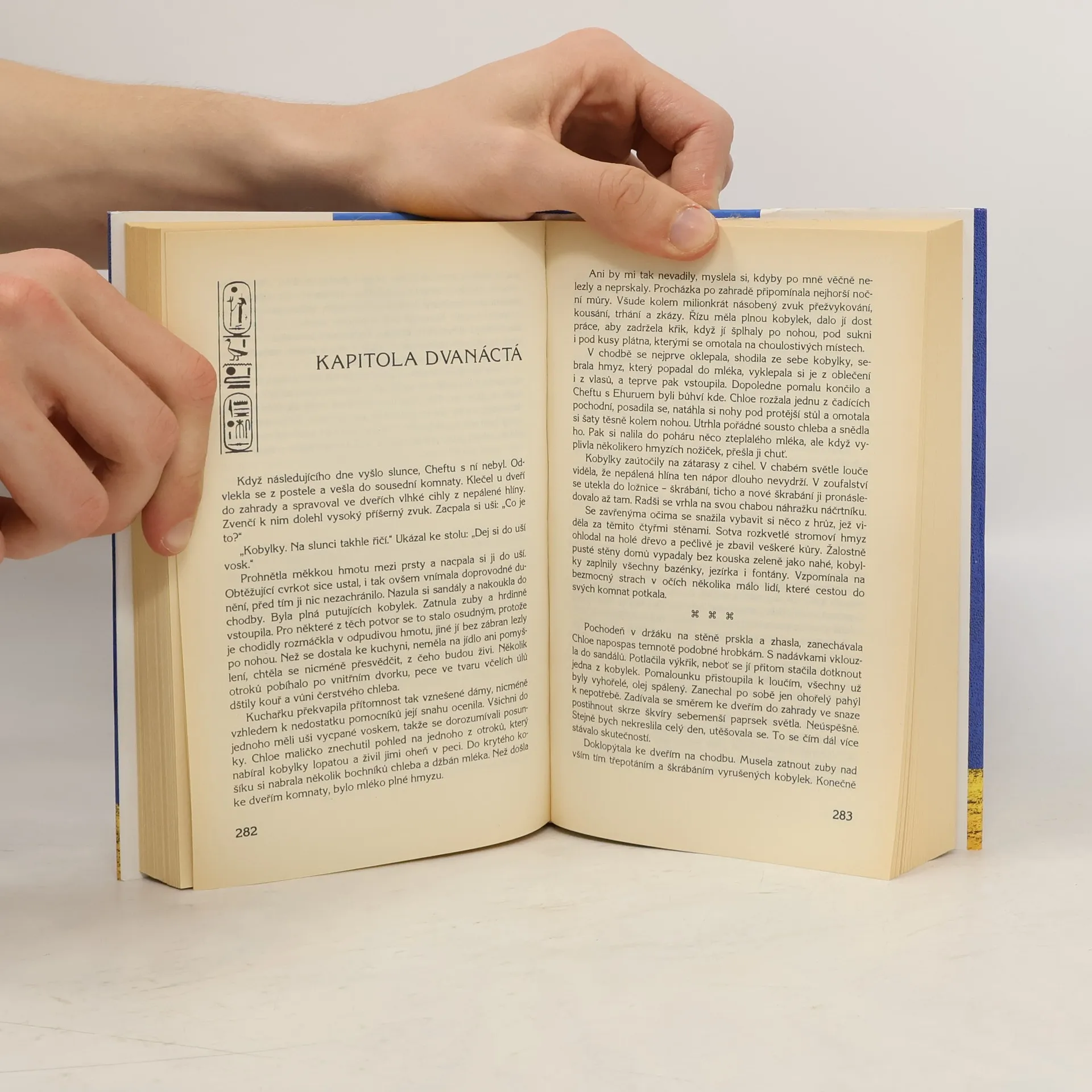 Hlavní hrdinka tohoto strhujícího románu se řízením osudu a hvězdné konstelace posune o celé tři tisíce let zpět do těla velekněžky staroegyptské bohyně lásky Hathory. V Egyptě právě vládne pozoruhodná královna Hatšepsut, které se podařilo udržet na trůnu dvacet let a po celou tu dobu udržet ve své vlasti mír a prosperitu. Chloe alias RaEmhetepet musí v nově získané identitě čelit nejednomu protivenství, včetně aktivního zájmu prince regenta, kterým není nikdo menší než nejvýznamnější dobyvatel v dějinách Egypta, budoucí král Thutmose III. Hathořina kněžka se nakonec rozhodne před princovou náklonností a Hatšepsutiným hněvem prchnout. Na útěku ji doprovází mladý dvorní lékař Cheftu, který si jako jediný dvořan získal její důvěru. Cestou potkají prastarého mudrce Imhotepa, který jí pomůže vyložit nejen smysl a cíl jejího propadu v čase, ale i pravděpodobný návod k návratu. Tím však překvapení nekončí, neboť moudrý Cheftu brzy ukáže, že v sobě skrývá ještě jednu osobnost, neméně fascinující…