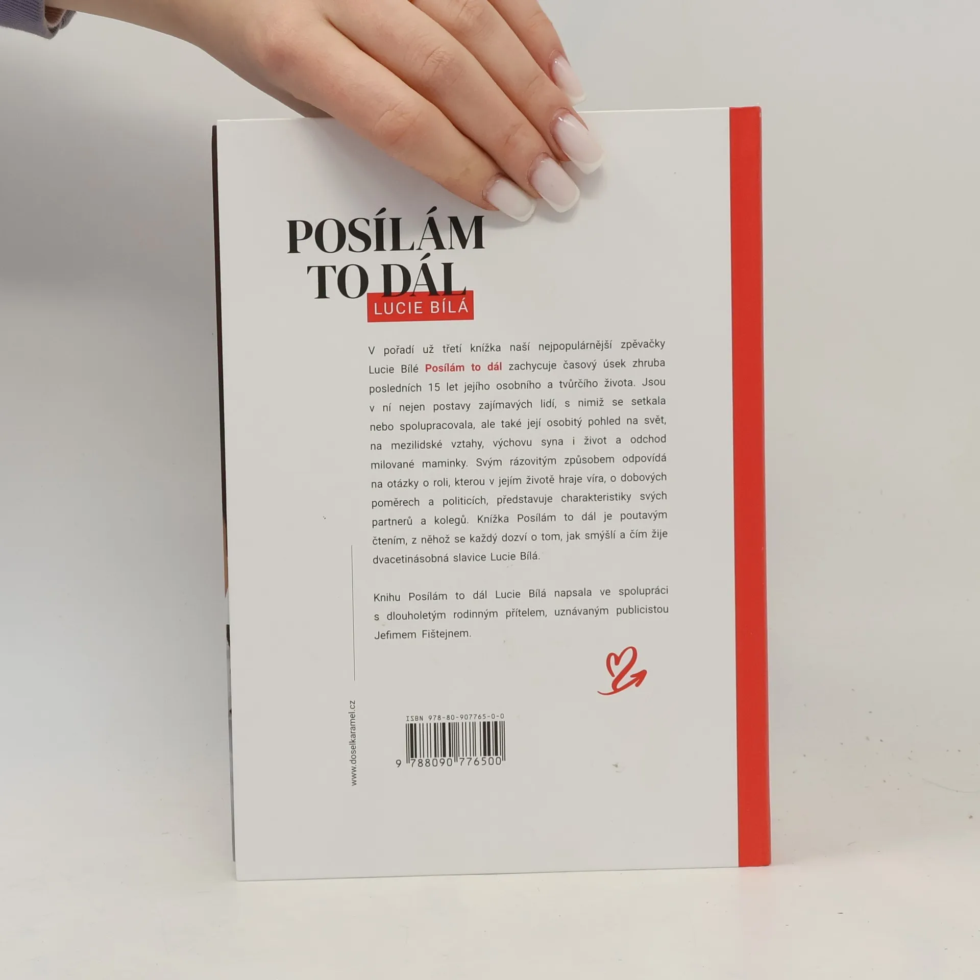 V pořadí už třetí knížka naší nejpopulárnější zpěvačky Lucie Bílé Posílám to dál zachycuje časový úsek zhruba posledních 15 let jejího osobního a tvůrčího života. Jsou v ní nejen postavy zajímavých lidí, s nimiž se setkala nebo spolupracovala, ale také její osobitý pohled na svět, na mezilidské vztahy, výchovu syna, život a smrt milované maminky. Svým rázovitým způsobem odpovídá na otázky o roli, kterou v jejím životě hraje víra, o dobových poměrech a politicích, představuje charakteristiky svých partnerů a kolegů. Knížka Posílám to dál je poutavým čtením, z něhož se každý dozví o tom, jak smýšlí a čím žije dvacetinásobná slavice Lucie Bílá. Knihu Lucie Bílá napsala ve spolupráci s dlouholetým rodinným přítelem, uznávaným publicistou Jefmem Fištejnem.
