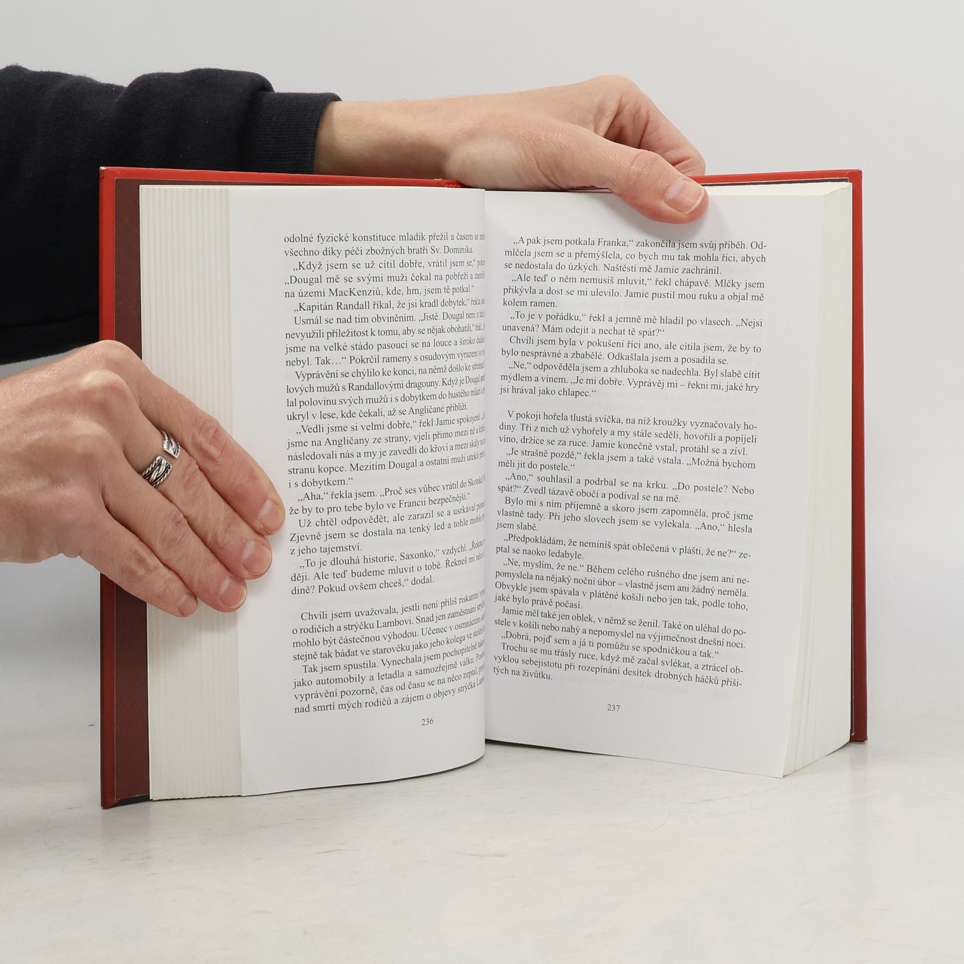 Zde je příběh, kterým to všechno začalo. Seznámíme se v něm se dvěma pozoruhodnými postavami, Claire Randallovou a Jamie Fraserem. Román je plný vášně a historických zajímavostí a snoubí se v něm dech beroucí dobrodružství s milostným příběhem, vedoucím napříč epochami. Píše se rok 1945 a Claire Randallová, bývalá armádní zdravotní sestra, se právě vrátila z války, aby se znovu setkala se svým manželem a vydala se na druhé líbánky. Při prohlídce jedné ze starověkých kamenných ruin, které jsou rozesety po celých britských ostrovech, se však dotkne jednoho z menhirů. Náhle je z ní Sassenach – cizinka – ve Skotsku zmítaném válkou a nájezdy klanů v pohraničí, to vše léta Páně… 1743. Claire je katapultována zpět v čase silami, kterým nerozumí. Ocitá se uprostřed intrik zemanů a špehů. Někteří z nich možná usilují o její život a jiní o její srdce. Právě zde se totiž setká s Jamesem Fraserem, galantním skotským bojovníkem, který ji zahrne láskou tak bezbřehou, že se Claire bude muset rozhodnout mezi věrností a touhou ; mezi dvěma naprosto odlišnými muži ; mezi dvěma životy, které nelze vzájemně skloubit. Dotisk v roce 2017.