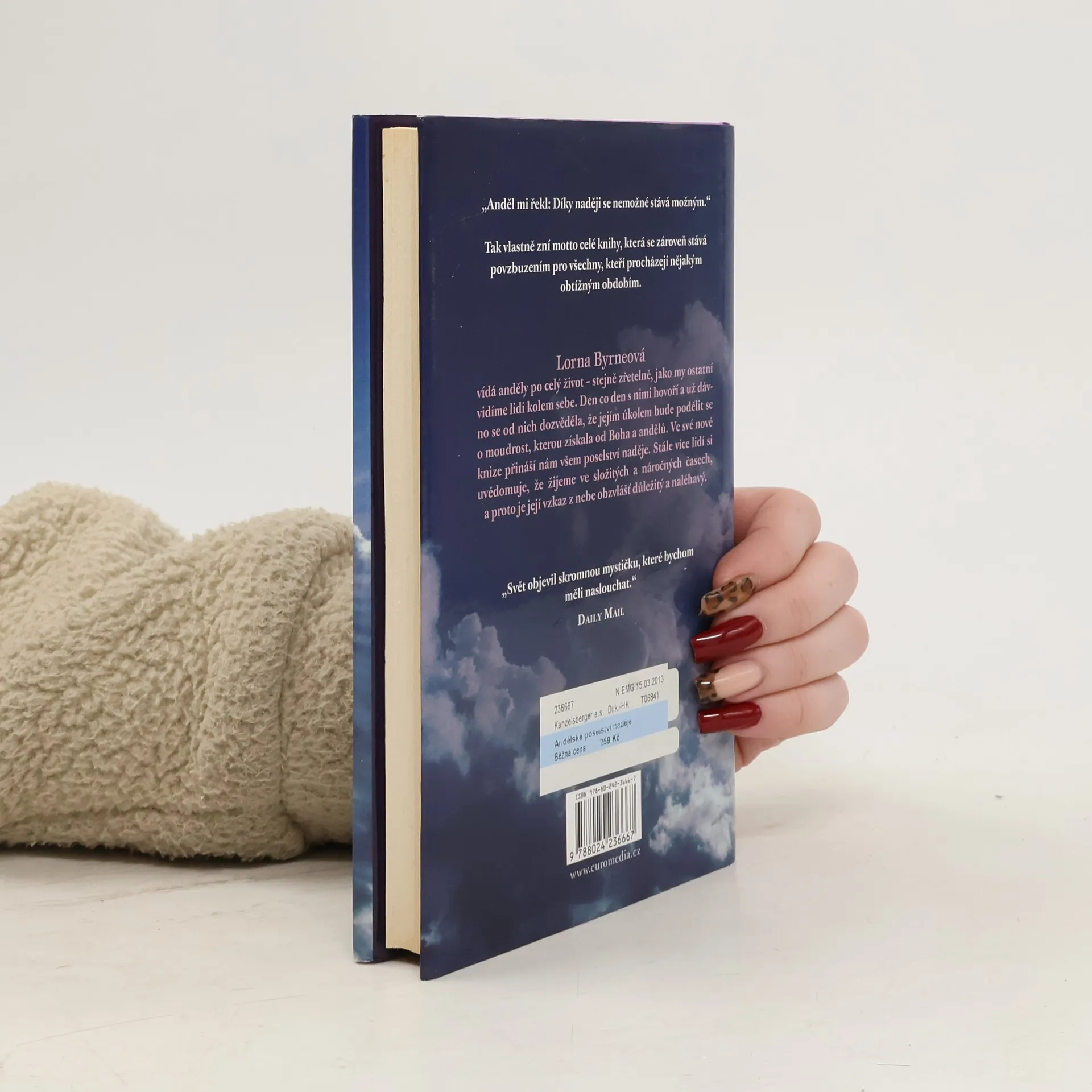 Irská autorka Lorna Byrne, která má od nejútlejšího dětství výjimečnou schopnost vidět anděly a komunikovat s nimi, je českým čtenářům dobře známá. Nesmírnou popularitu si získala jak její autobiografická kniha Andělé v mých vlasech, tak i volné pokračování pod názvem Schody do nebe. Ve svém nejnovějším třetím díle Andělské poselství naděje se autorka obrací přímo ke čtenářům s doporučeními, jak mohou oslovit anděly s prosbou o pomoc. Zdůrazňuje velkou sílu nejen modlitby a lásky, ale především naděje.