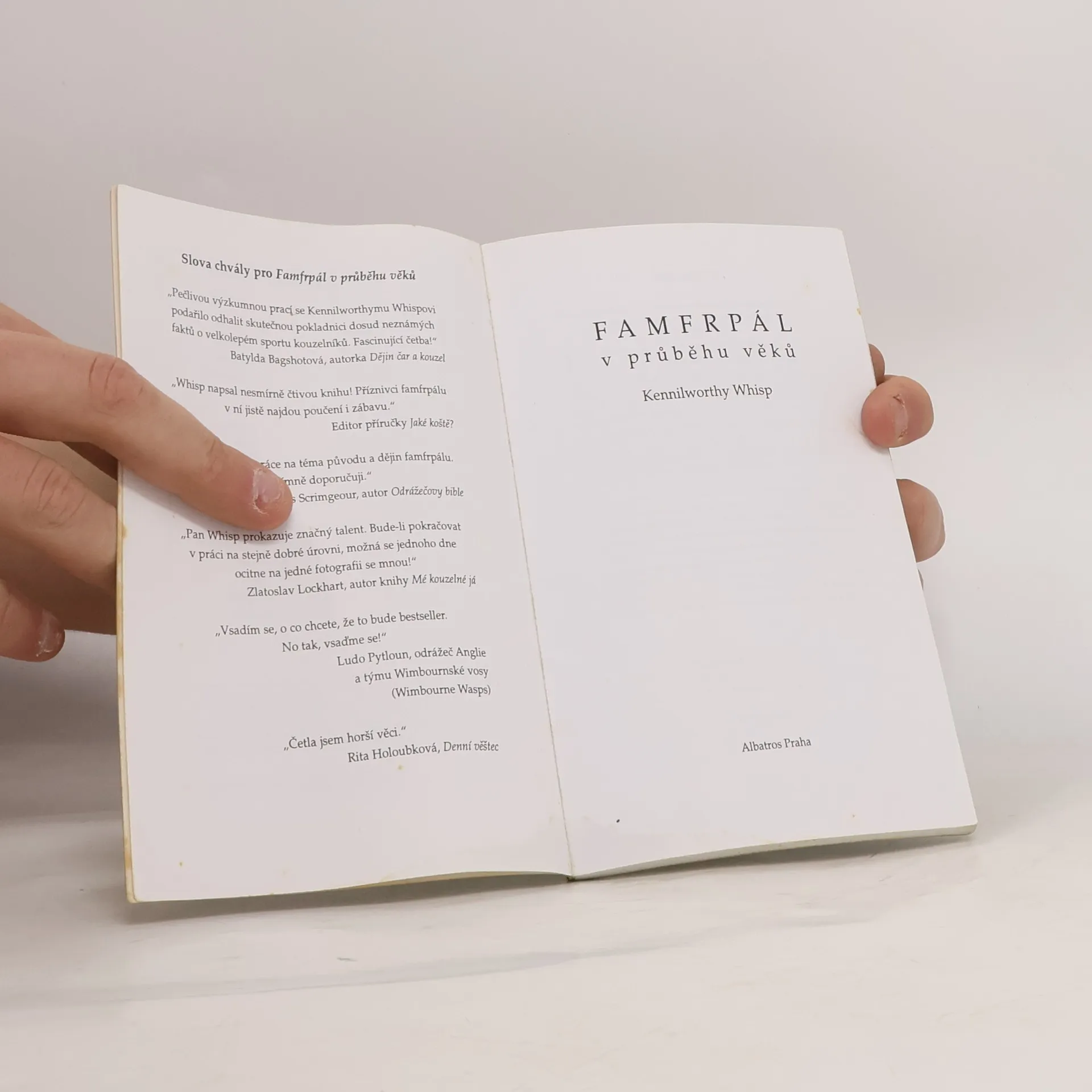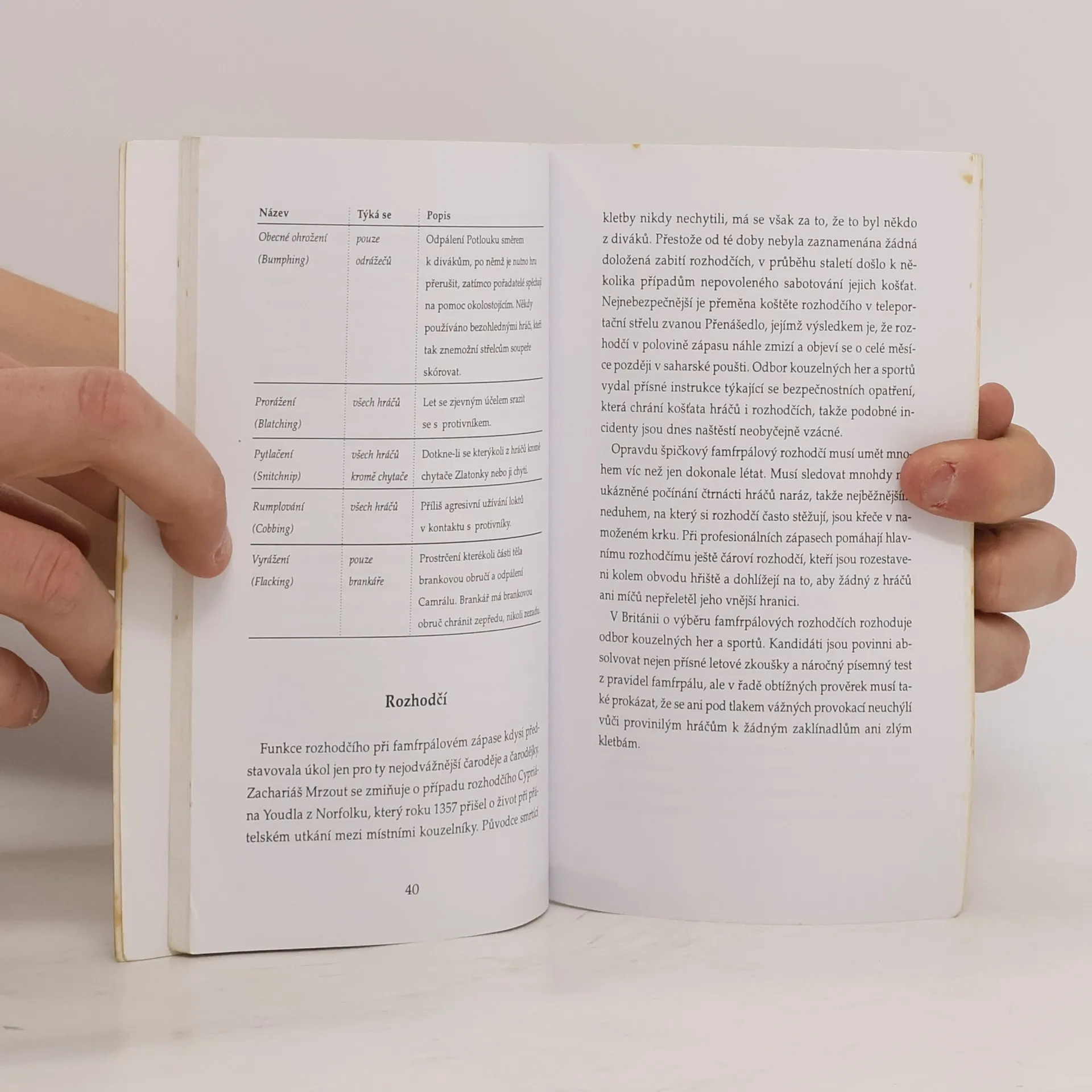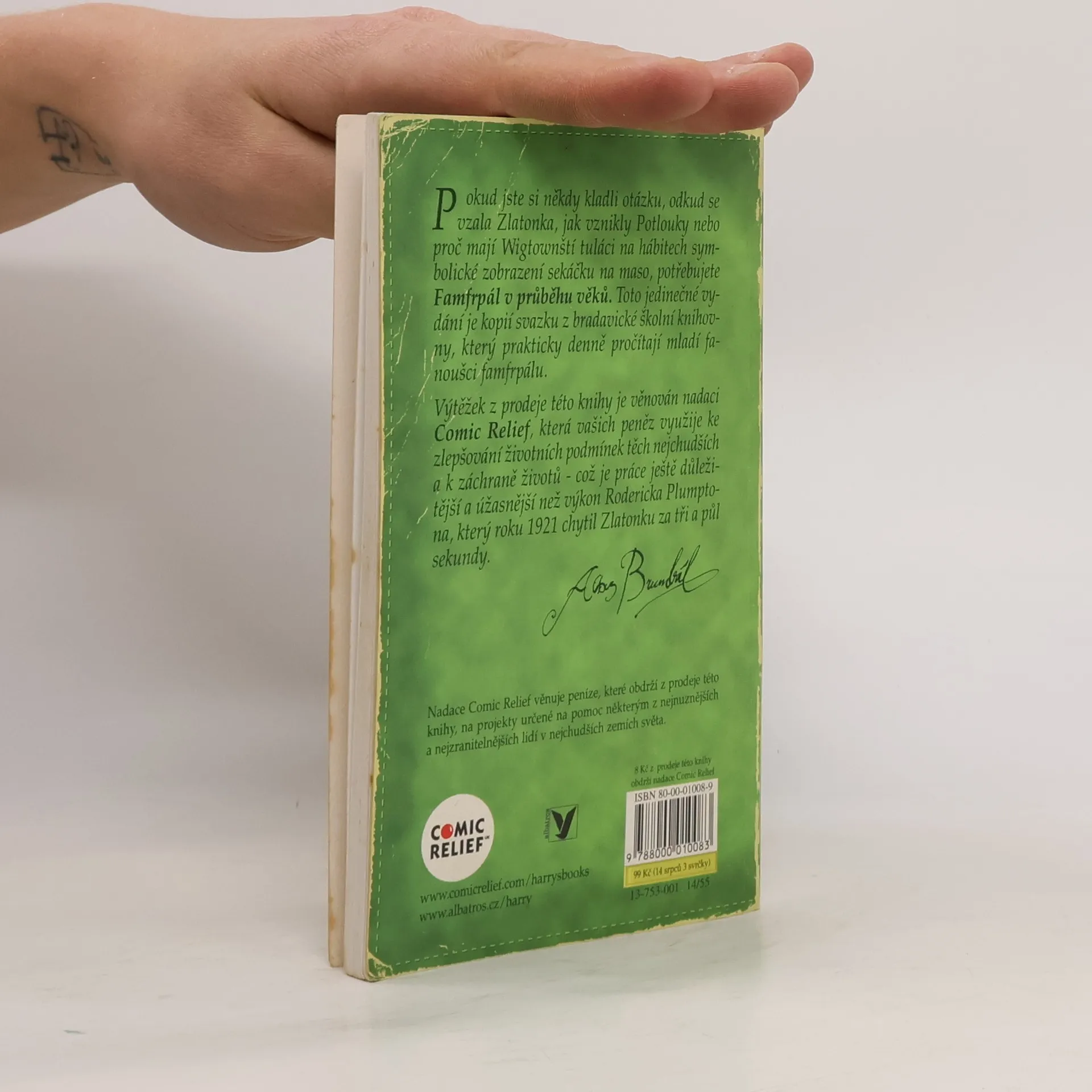 Pro všechny, kdo mají rádi Harryho a fandí mu v jeho famfrpálových kláních za Nebelvír! Reprint příručky získané přímo z bradavické knihovny při Škole čar a kouzel vás seznámí s vývojem létajících košťat, poučíte se, jaké hry se s košťaty hrály ve starověku, jak se objevila Zlatonka, jakými proměnami prošel famfrpál od 14. století a jak vypadá dnes, seznámíte se s významnými famfrpálovými týmy ve Velké Británii a v Irsku. Uvádí ji předmluva ředitele bradavické školy Albuse Brumbála a najdete v ní i reprodukci výpůjčního lístku z bradavické knihovny. Autorem této příručky je expert na slovo vzatý, kromě ní napsal např. knížky Lítá jako šílenec, Potlouky v akci či Studie o strategii obrany při famfrpálu. Jeho příručku vysoce oceňuje jak Albus Brumbál, tak Batylda Bagshotová (autorka Dějin čar a kouzel), ale i Zlatoslav Lockhart a další významné osobnosti kouzelnického světa.... celý text