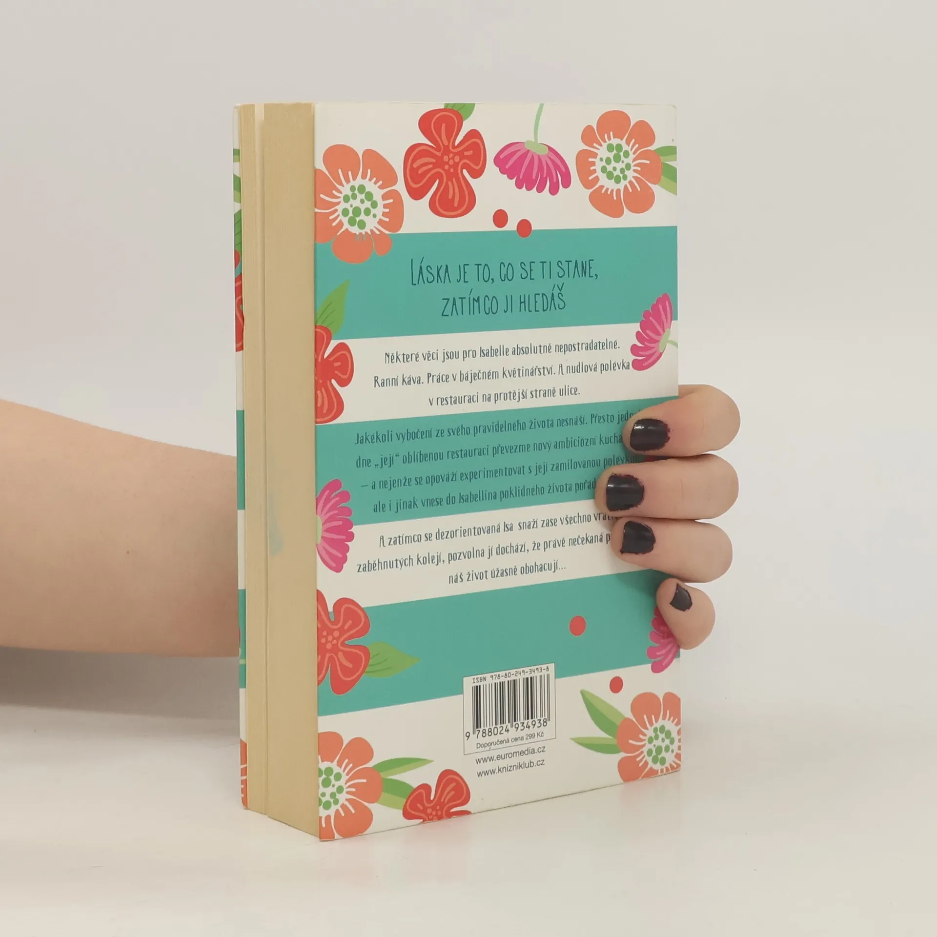 LÁSKA JE TO, CO SE TI STANE, ZATÍMCO JI HLEDÁŠ Některé věci jsou pro Isabelle absolutně nepostradatelné: ranní káva. Práce v báječném květinářství. A nudlová polévka v restauraci na protější straně ulice. Jakékoli vybočení ze svého pravidelného života nesnáší. Přesto jednoho dne „její“ oblíbenou restauraci převezme nový ambiciózní kuchař Jens – a nejenže se opováží experimentovat s její zamilovanou polévkou, ale i jinak vnese do Isabellina poklidného života pořádný chaos. A zatímco se dezorientovaná Isa snaží zase všechno vrátit do zaběhnutých kolejí, pozvolna jí dochází, že právě nečekaná překvapení náš život úžasně obohacují…