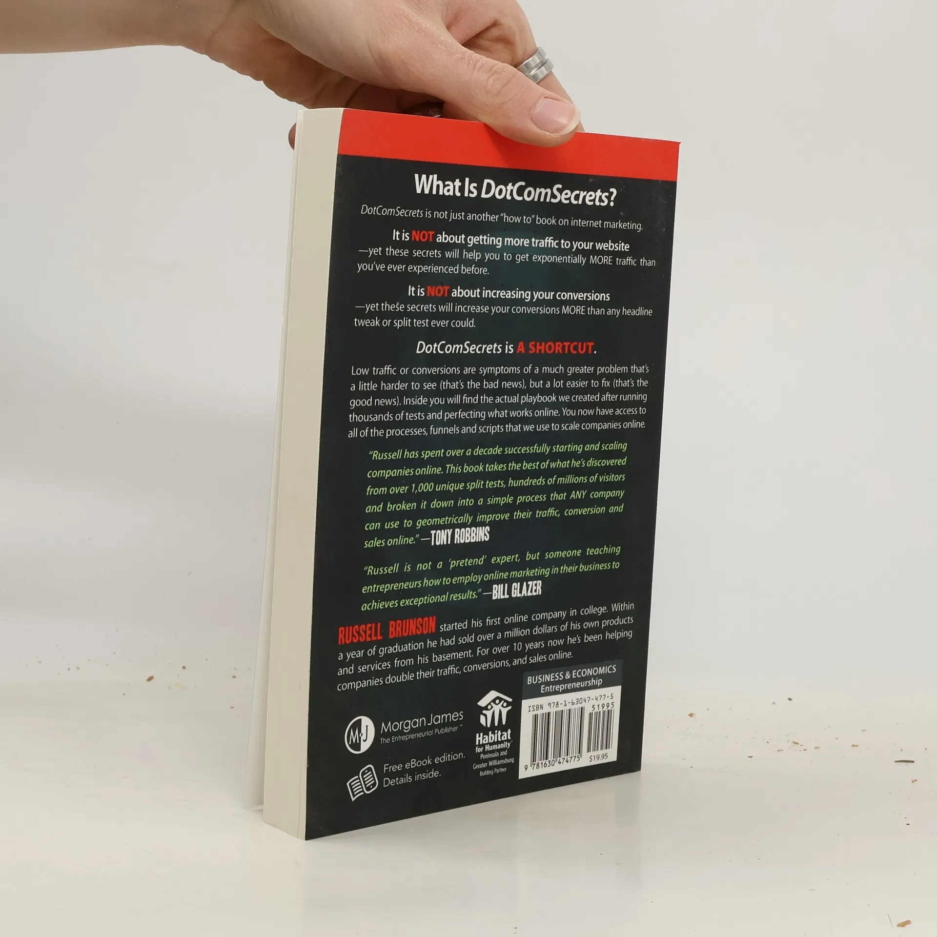 If you are currently struggling with getting traffic to your website, or converting that traffic when it shows up, you may think you've got a traffic or conversion problem. In Russell Brunson's experience, after working with thousands of businesses, he has found that's rarely the case. Low traffic and weak conversion numbers are just symptoms of a much greater problem, a problem that's a little harder to see (that's the bad news), but a lot easier to fix (that's the good news). DotComSecrets will give you the marketing funnels and the sales scripts you need to be able to turn on a flood of new leads into your business.
