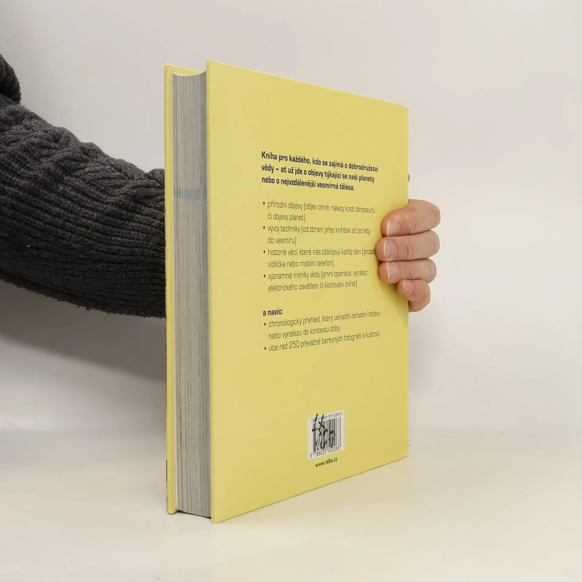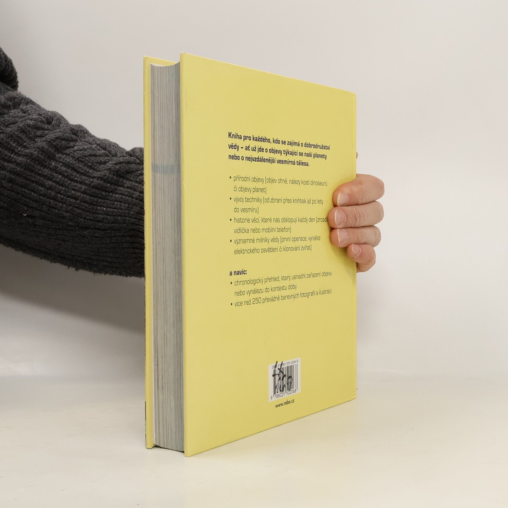 Kniha pro každého, kdo se zajímá o dobrodružství vědy – ať už jde o objevy týkající se naší planety, nebo o nejvzdálenější vesmírná tělesa. Nepřeberné množství faktů z oblasti přírodních objevů, vývoje techniky a historie každodenních předmětů je doplněno bohatým obrazovým materiálem. Obsáhlý chronologický přehled umožňuje snadnou orientaci a předkládá ucelený pohled na vývoj v oblasti vědy. Každému heslu je věnována dvojstrana se zvýrazněným letopočtem a dějinnými souvislostmi. Vyšlo také ve větším formátu pod názvem Encyklopedie vědění lidstva. Benefity: * 180 chronologicky řazených objevů a vynálezů * graficky zvýrazněné časové zařazení vynálezu a dobový kontext * zasvěcené a zároveň maximálně srozumitelné texty * seznam témat usnadňující vyhledávání v knize * přehledný rejstřík * velké množství barevných i černobílých fotografií a ilustrací