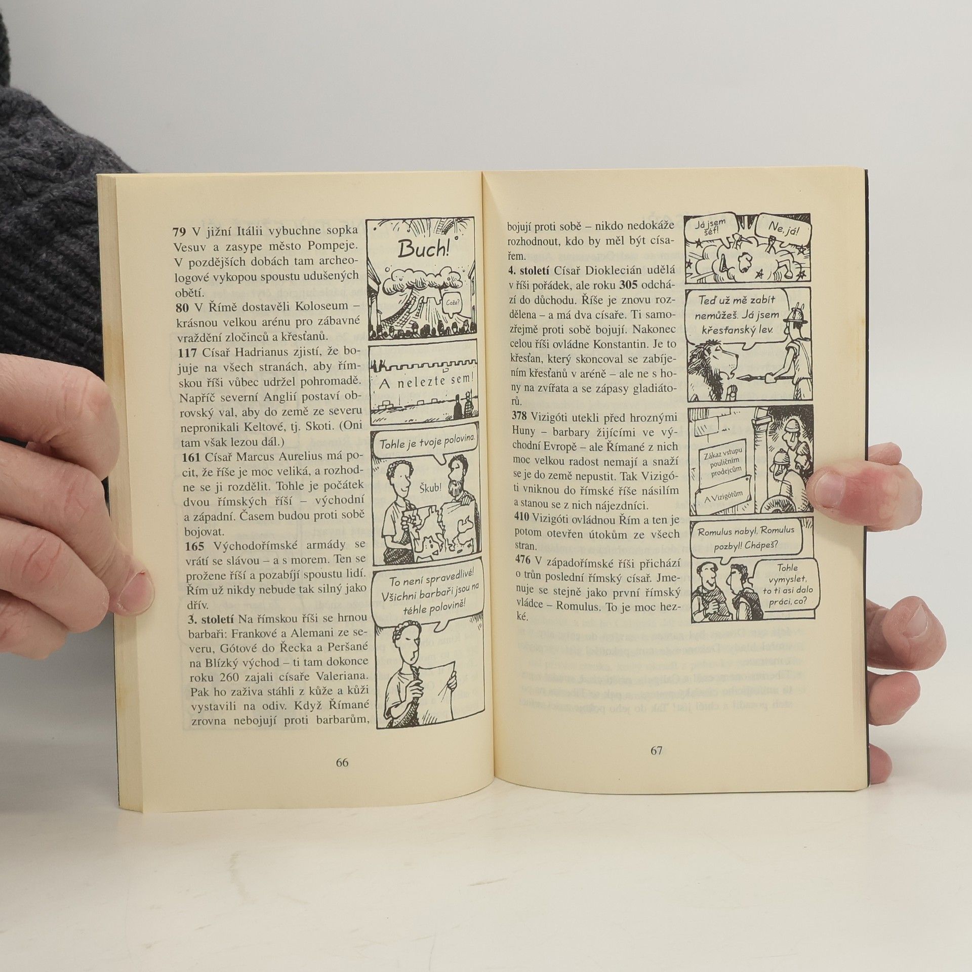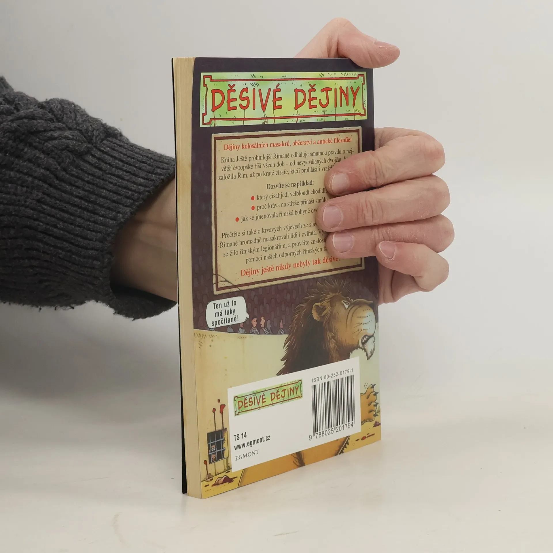 Tato knížka odhaluje smutnou pravdu o největší evropské říši všech dob – od nevycválaných dvojčat, která založila Řím, až po kruté císaře, kteří prohlásili vraždění za národní sport. Přečtěte si o krvavých výjevech ze slavného Kolosea, vyzkoušejte si, jak se žilo římským legionářům, a prověřte znalosti svého učitele pomocí našich odporných římských faktů.