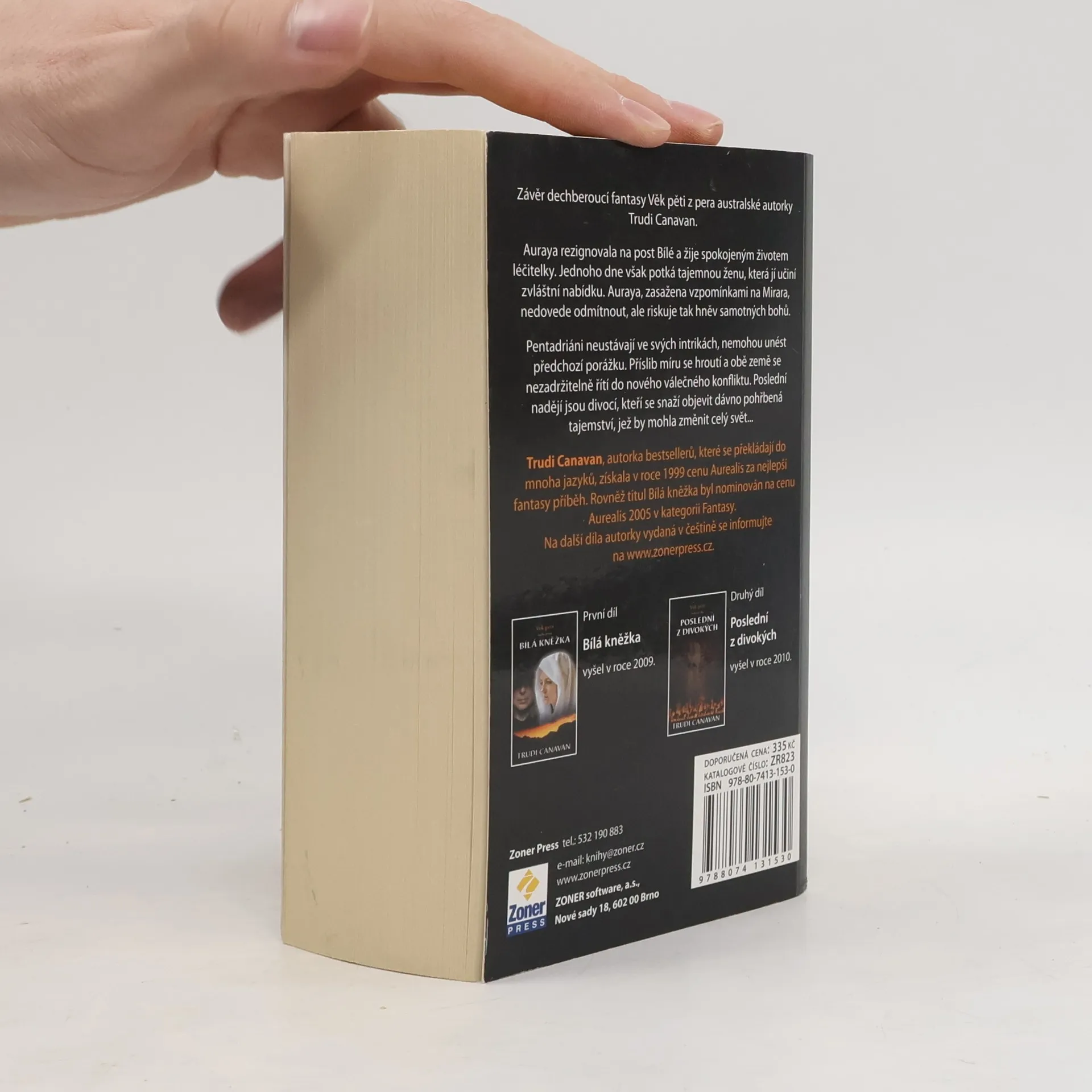 Poslední díl napínavé fantasy trilogie Věk pěti z pera slavné australské spisovatelky Trudi Canavan. Auraya se dobrovolně vzdala svého postu Bílé a nyní působí jako ochránkyně a léčitelka u Sijů, létajících lidí. Jednoho dne se potká s tajemnou ženou, která tvrdí, že zná Mirara. Žena jí učiní podivnou nabídku a Auraya nedokáže odmítnout. Musí být ale velmi opatrná a neriskovat svým počínáním hněv bohů, jenž by pro ni mohl být smrtící.