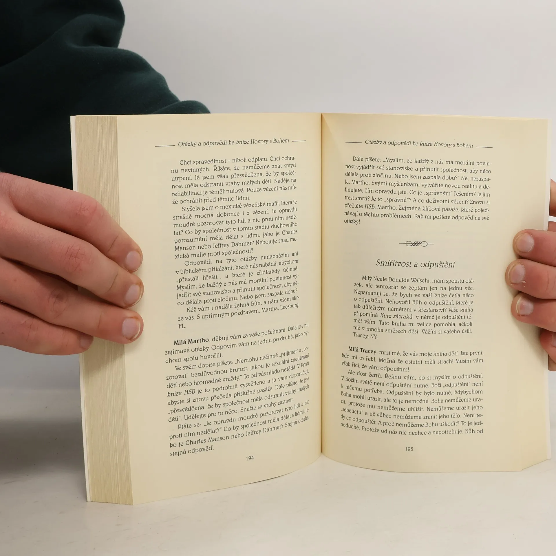 Miliony čtenářů milují Hovory s Bohem které byly přeloženy do šestadvaceti jazyků. Tisíce čtenářů posílají Nealu Walschovi své otázky - otázky, které se týkají náboženství, dobra a zla, tělesného a duševního zdraví, smrti, proroctví, povahy Boha a vesmíru, modlitby, andělů a ďáblů, duchovní cesty, partnerských vztahů a mnoha dalších problémů. V této knize Neale odpovídá se svým charakteristickým humorem a moudrostí na nejzajímavější a nejprovokativnější otázky; výsledkem je nesmírně inspirující kniha. Nealovy odpovědi ilustrují přímé spojení mezi duchovní a hmotnou realitou a ukazují, že to, čím jsme a co děláme, je výsledkem toho, jak myslíme a v co věříme. Tato kniha nám dává příležitost zamyslet se nad sebou, změnit se, a tím možná změnit svět.