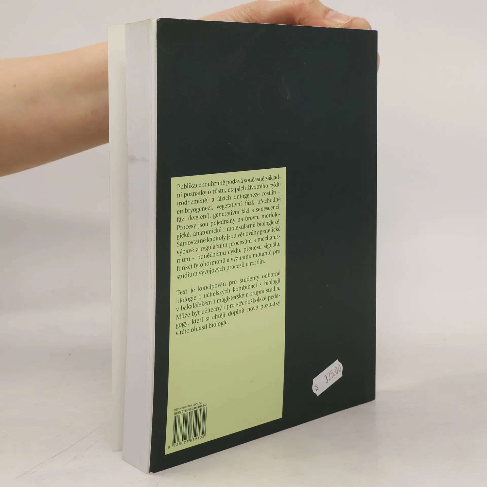 Publikace souhrně podává současné základní poznatky o růstu, etapách životního cyklu (rodozměně) a fázích ontogeneze rostlin - embryogenezi, vegetativní fázi, přechodné fázi (kvetení), generativní fázi a senescenci. Procesy jsou pojednány na úrovni morfologické, anatomické i molekulárně biologické. Samostatné kapitoly jsou věnovány genetické výbavě a regulačním procesům a mechanismům - buněčnému cyklu, přenosu signálu, funkci fytohormonů a významu mutantů pro studium vývojových procesů u rostlin.