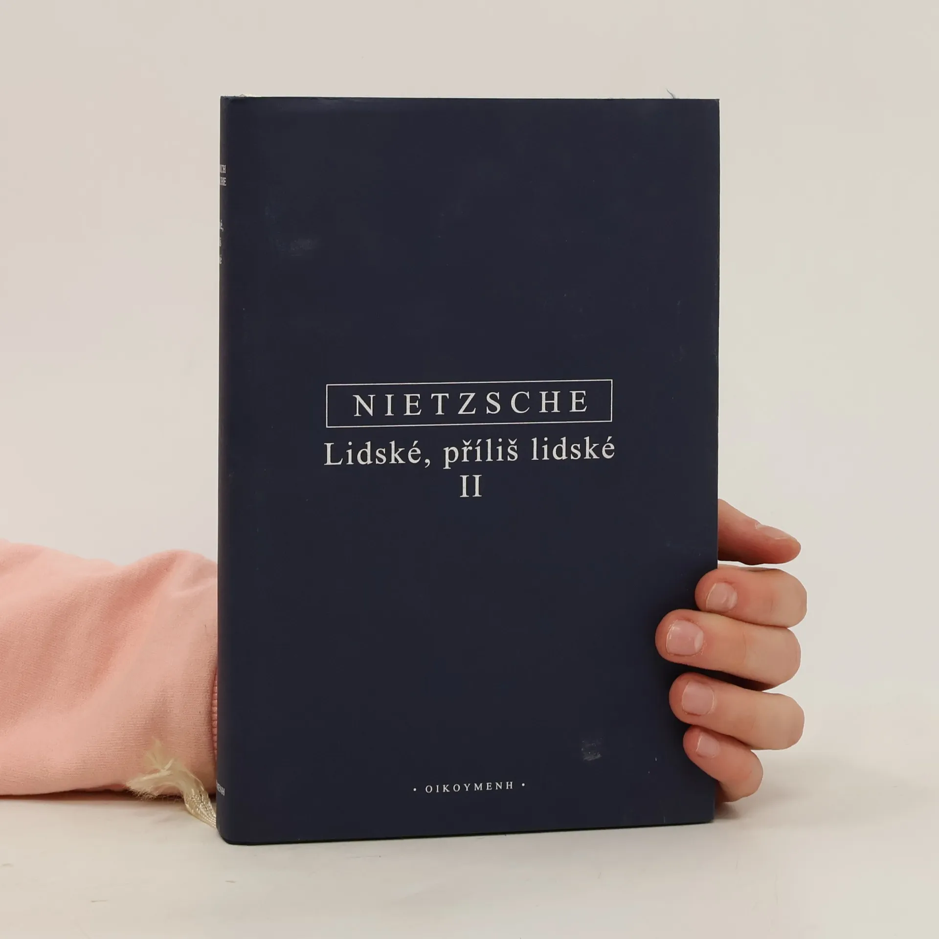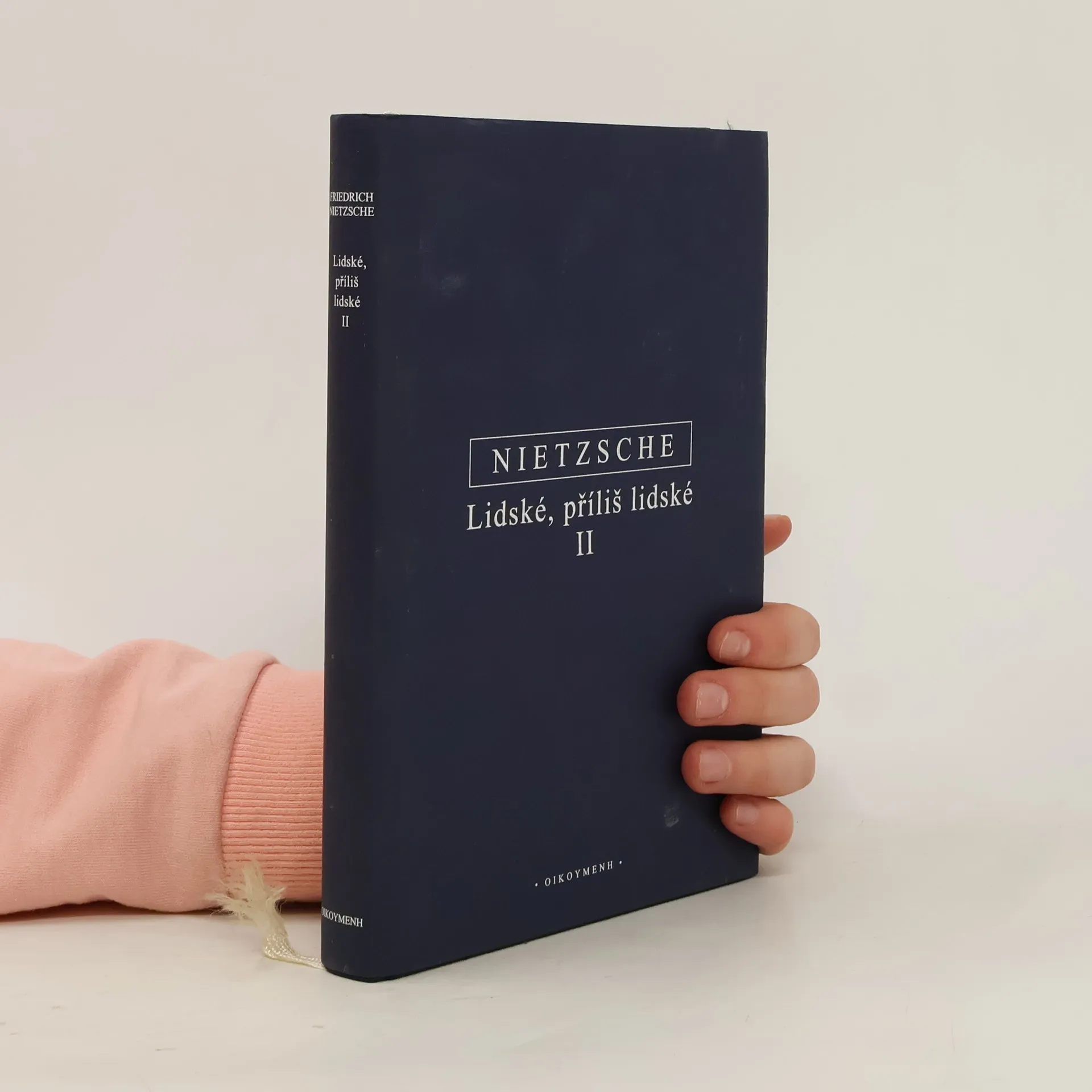 Kniha, kterou Friedrich Nietzsche při závěrečném zhodnocení své tvorby v Ecce homo nazval „pomníkem krize“, je jeho prvním rozsáhlým dílem napsaným formou „aforismů“, jež autor zkomponoval do tematických skupin. Postavou „svobodného ducha“ a filosofickým zájmem o bezpředsudečné poznání „nejbližších věcí“ se zde Nietzsche obrací proti dosavadní metafyzické tradici. K prvnímu dílu napsal autor dvě pokračování: první vyšlo na jaře 1879, pod titulem Lidské, příliš lidské. Kniha pro svobodné duchy. Dodatek: Rozličné názory a výroky. V prosinci téhož roku vyšel s týmž titulem a podtitulem druhý „doplněk“ nazvaný Poutník a jeho stín. V roce 1886 byly tyto dva dodatky svázány a uvedeny znovu na trh pod společným označením „Druhý díl“. Přeložila V. Koubová.