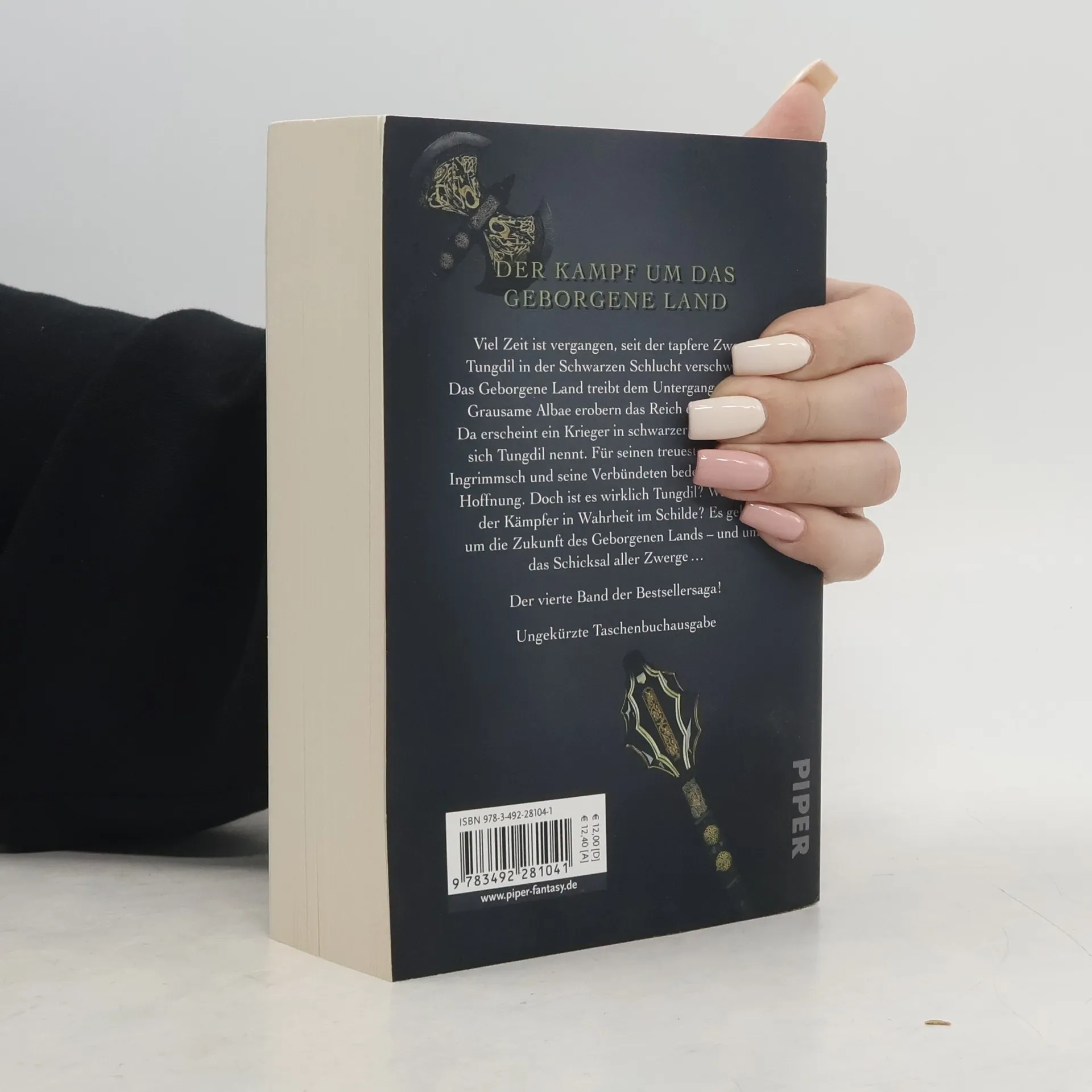 Viele Zyklen sind vergangen, seit der tapfere Zwerg Tungdil Goldhand in der Schwarzen Schlucht verschwand. Das Geborgene Land treibt unaufhaltsam dem Untergang entgegen. Drachen, Magier und die grausamen Albae haben das Reich unter sich aufgeteilt. Die Zwergenstämme wurden in die finsteren Stollen zurückgedrängt oder fast völlig vernichtet. Dann kehrt ein Zwergenkrieger in einer schwarzen Rüstung zurück, der sich Tungdil nennt. Für seinen treuesten Freund Ingrimmsch und seine Gefährten bedeutet das neue Hoffnung. Doch bald mehren sich Zweifel – ist es wirklich Tungdil, oder führt der Zwerg etwas ganz anderes im Schilde? Es geht um die Zukunft des Geborgenen Landes – und um das Schicksal aller Zwerge.