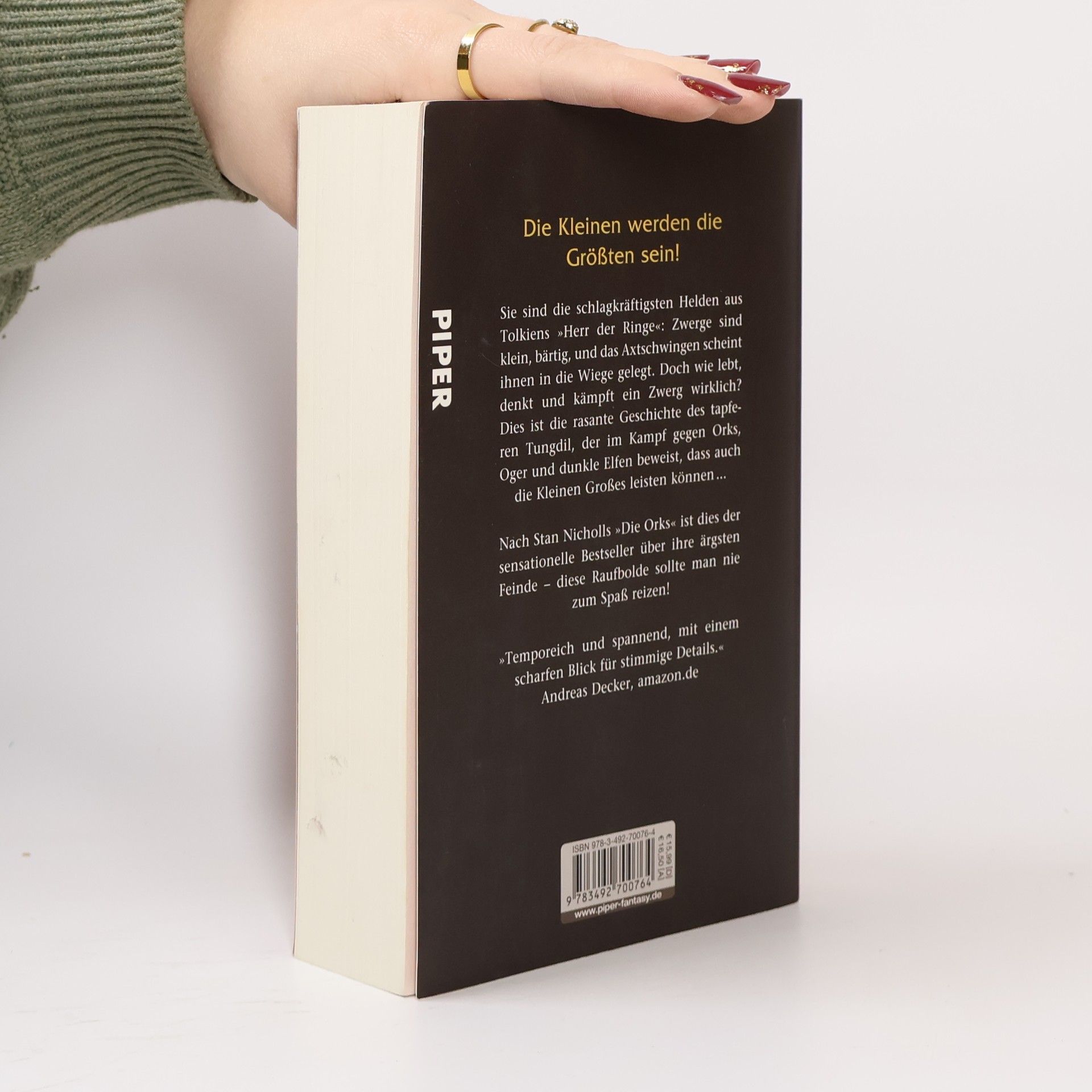 Sie sind die schlagkräftigsten Helden aus J. R. R. Tolkiens »Herr der Ringe«: Zwerge sind klein, bärtig, und das Axtschwingen scheint ihnen in die Wiege gelegt. Doch wie lebt, denkt und kämpft ein Zwerg wirklich? Dies ist die rasante Geschichte des tapferen Tungdil, der im Kampf gegen Orks, Oger und dunkle Elfen beweist, dass auch die Kleinen Großes leisten können … Nach Stan Nicholls »Die Orks« ist dies der sensationelle Bestseller über ihre ärgsten Feinde – diese Raufbolde sollte man nie zum Spaß reizen!