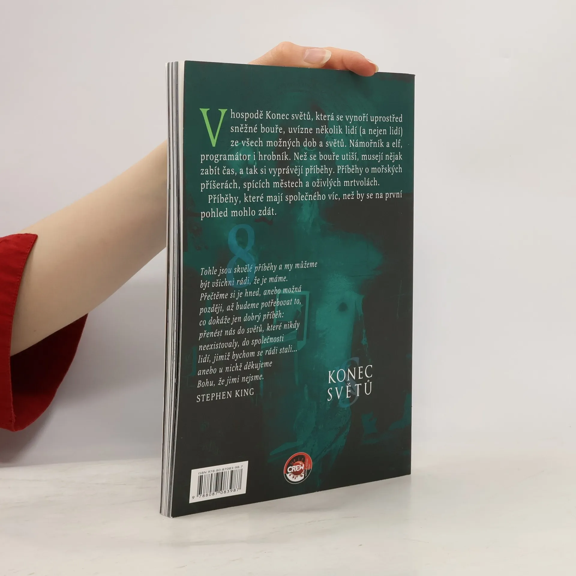 V hospodě Konec světů, která se vynoří uprostřed sněžné bouře uvízlo několik lidí (a nejen lidí), ze všech možných dob a světů. Námořník i elf, programátor i hrobník. Než se bouře utiší, musí nějak zabít čas a tak si vyprávějí příběhy. Příběhy o mořských příšerách, spících městech a oživlých mrtvolách. Příběhy, které mají spolu společného víc, než by se na první pohled zdálo.