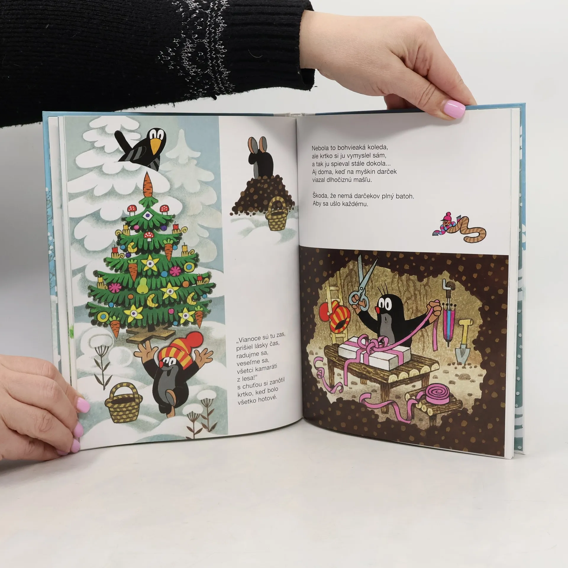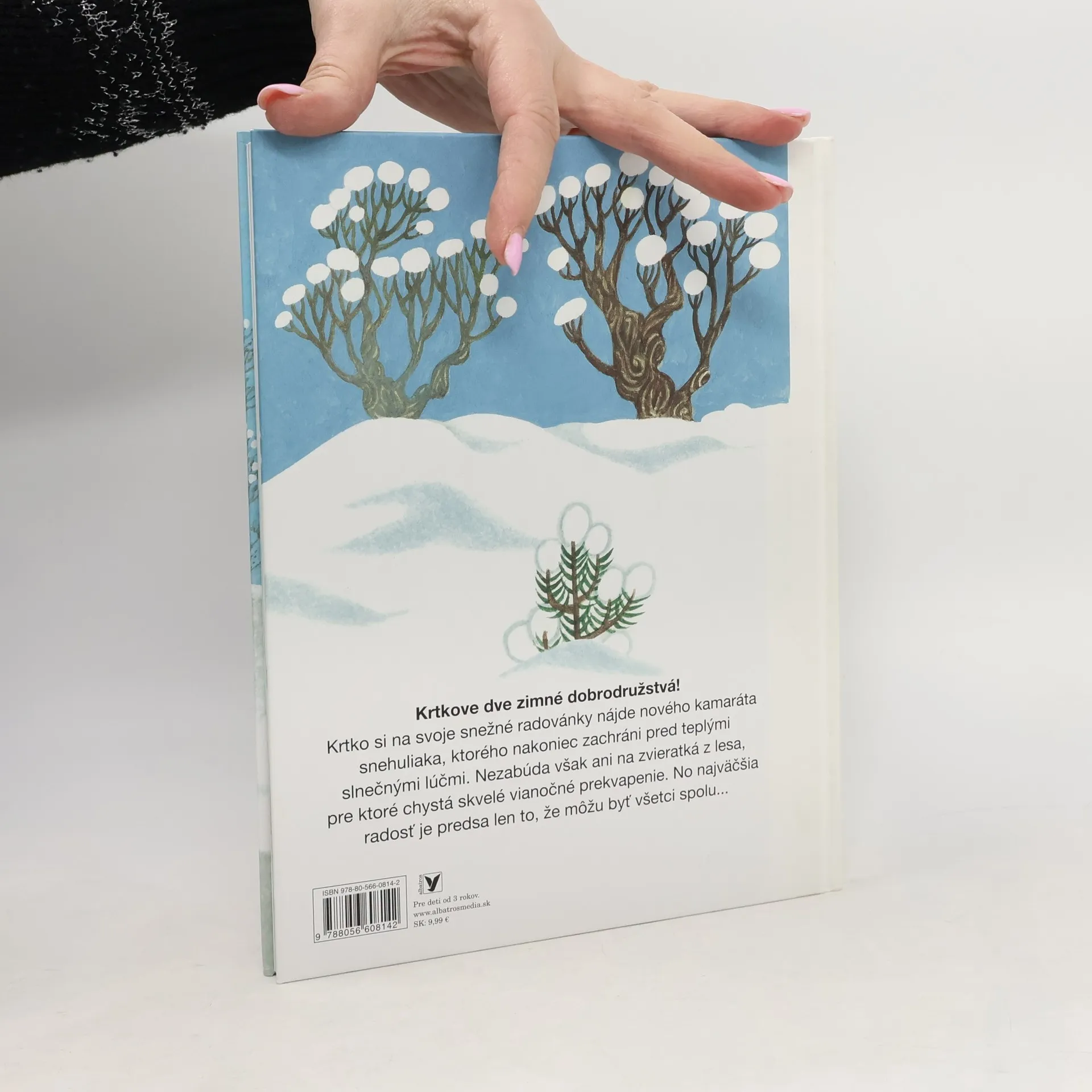 Tentokrát ponúkame súborné vydanie dvoch zimných dobrodružstiev. Najprv získava Krtek nového kamaráta snehuliaka, s ktorým si užíva zábavu na snehu, ale ktorého nakoniec zachraňuje pred teplými slnečnými lúčmi. Snehuliak prečká teplé dni vysoko v horách, kde sneh nikdy nemizne, a keď sa kamaráti opäť stretnú, prídu mimo iného na slovo Vianoce, ale snehuliak ich počuje po prvýkrát, a tak mu Krtek rozpráva… V druhom príbehu chystá vianočné prekvapenie pre kamarátov v lese a dost mu prekáža protivná a nenechavá vrana. Ale náš hrdina si opäť poradí. Príjemné je pomáhať priateľom a robiť im radosť…