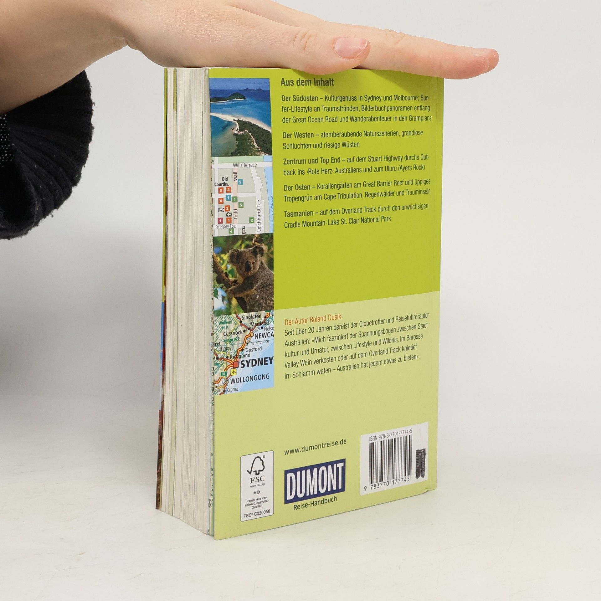 Für die 3. Auflage des DuMont Reise-Handbuches war Autor Roland Dusik wieder intensiv vor Ort unterwegs. Auf der anderen Seite des Globus, dort, wo die Mittagssonne im Norden strahlt statt im Süden und die Junikäfer im Dezember fliegen, da liegt die gewaltige Landmasse Australien, ein Kontinent mit enormen Gegensätzen. Von Sydney über Melbourne bis Adelaide, von den Snowy Mountains über die Great Ocean Road bis zum Outback und dem Great Barrier Reef werden alle sehenswerten Regionen und Städte beschrieben. Zu jedem Kapitel präsentiert eine Doppelseite 'Auf einen Blick' die Highlights, die schönsten Routen, aktive Naturerlebnisse und besondere Tipps des Autors. Ort für Ort hat Roland Dusik ausgesuchte Unterkünfte, Restaurants oder Einkaufsadressen zusammengestellt, die in den Cityplänen eingezeichnet sind. Wanderungen erschließen die schönsten Landschaften, etwa die Umgebung der Wentworth Falls im Blue Mountains National Park, die fantastischen Aussichtspunkte im Grampians National Park oder den Cradle Mountain-Lake St. Clair National Park auf Tasmanien. Viel Wissenswertes über Australien, über die Geschichte und Gegenwart oder den Alltag der Menschen, lässt sich in der einführenden Landeskunde wie in den eingestreuten Themenseiten nachlesen. Für eine rasche Orientierung sorgen die detaillierte Extra-Reisekarte im Maßstab 1:4.000.000, eine Übersichtskarte mit den Highlights sowie 25 Citypläne, Wander- und Routenkarten.