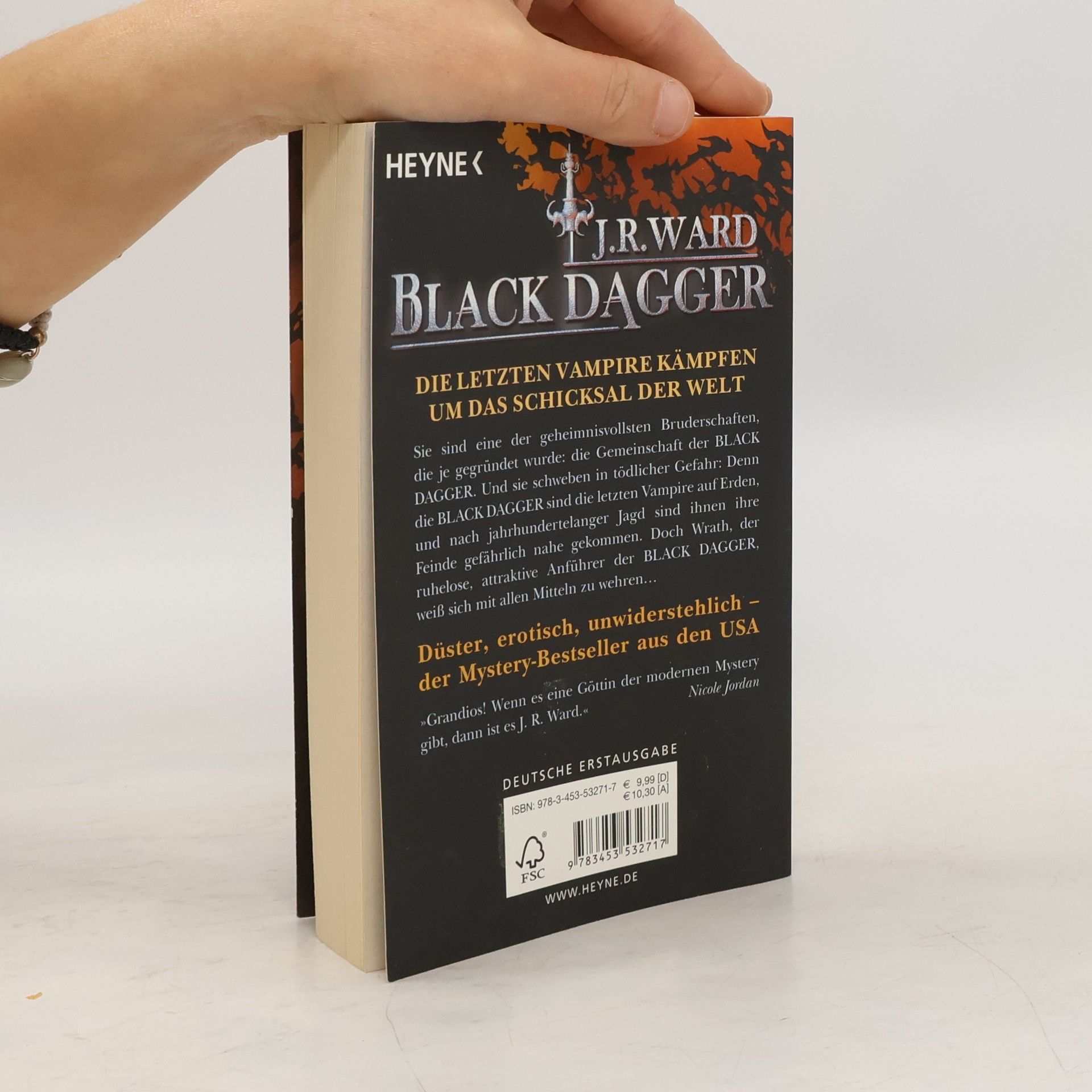 Düster, erotisch, unwiderstehlich – die letzten Vampire kämpfen um das Schicksal der Welt Das Leben der jungen Beth Randall verläuft eigentlich in ruhigen Bahnen – sie lebt in einem zu kleinen Apartment, geht selten aus und hat einen schlecht bezahlten Reporterjob bei einer kleinen Zeitung in Caldwell, New York. Ihr Job ist es auch, der sie an den Tatort eines ungewöhnlichen Mordes führt: Vor einem Club ist ein Mann bei der Explosion einer Autobombe gestorben, und die Polizei kann keinen Hinweis auf die wahre Identität des Toten finden. Dann trifft Beth auf den geheimnisvollen Wrath, der in Zusammenhang mit dem Mord zu stehen scheint. Der attraktive Fremde übt eine unheimliche Anziehung auf sie aus, der sie sich nicht entziehen kann. Während sie sich auf eine leidenschaftliche Affäre mit Wrath einlässt, wächst in ihr der Verdacht, dass er der gesuchte Mörder ist. Und Wrath hat noch ein paar Überraschungen mehr für sie auf Lager, denn er behauptet, ein Vampir zu sein – und das Oberhaupt der Bruderschaft der BLACK DAGGER, die seit Jahrhunderten einen gnadenlosen Krieg um das Schicksal der Welt führen muss ….