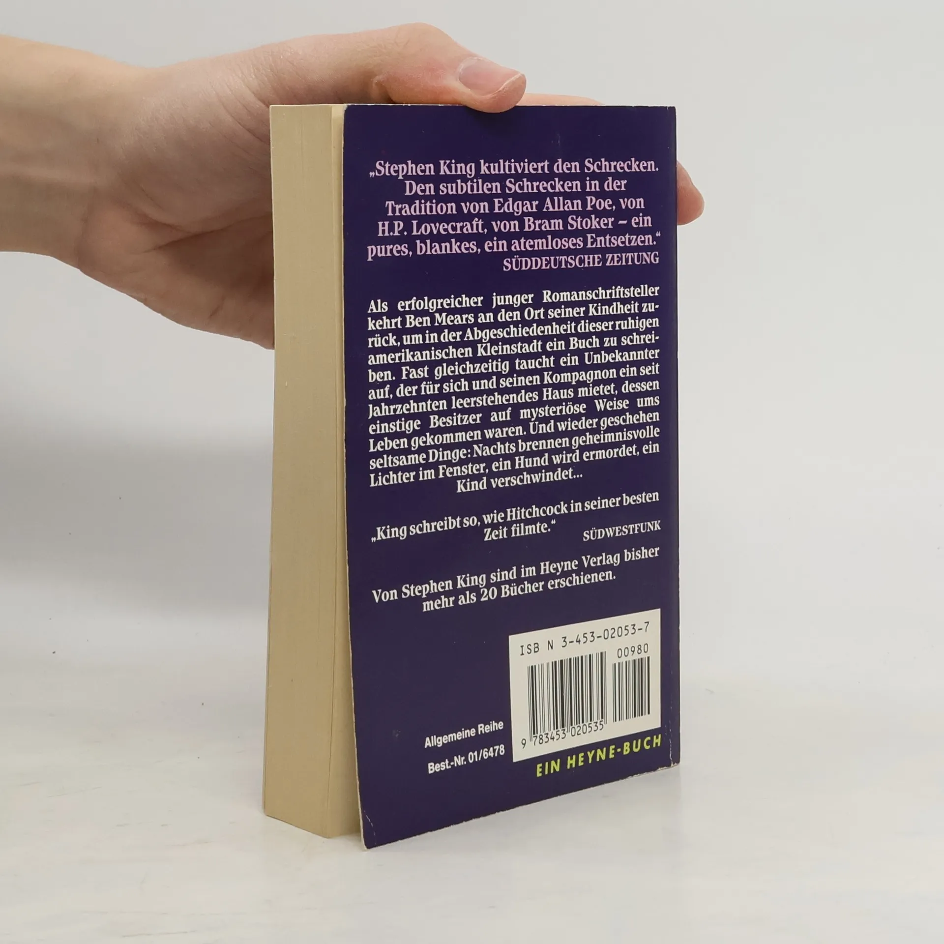 Als erfolgreicher junger Romanschriftsteller kehrt Ben Mears an den Ort seiner Kindheit zurück, um in der Abgeschiedenheit dieser ruhigen amerikanischen Kleinstadt ein Buch zu schreiben. Fat gleichzeitig taucht ein Unbekannter auf, der für sich und seinen Kompagnon ein seit Jahrzehnten leerstehendes Haus mietet, dessen einstige Besitzer auf mysteriöse Weise ums Leben gekommen waren. Und wieder geschehen seltsame Dinge: nachts brennen geheimnisvollen Lichter im Fenster, ein Hund wird ermordet, ein Kind verschwindet... Gekürzte Übersetzung.