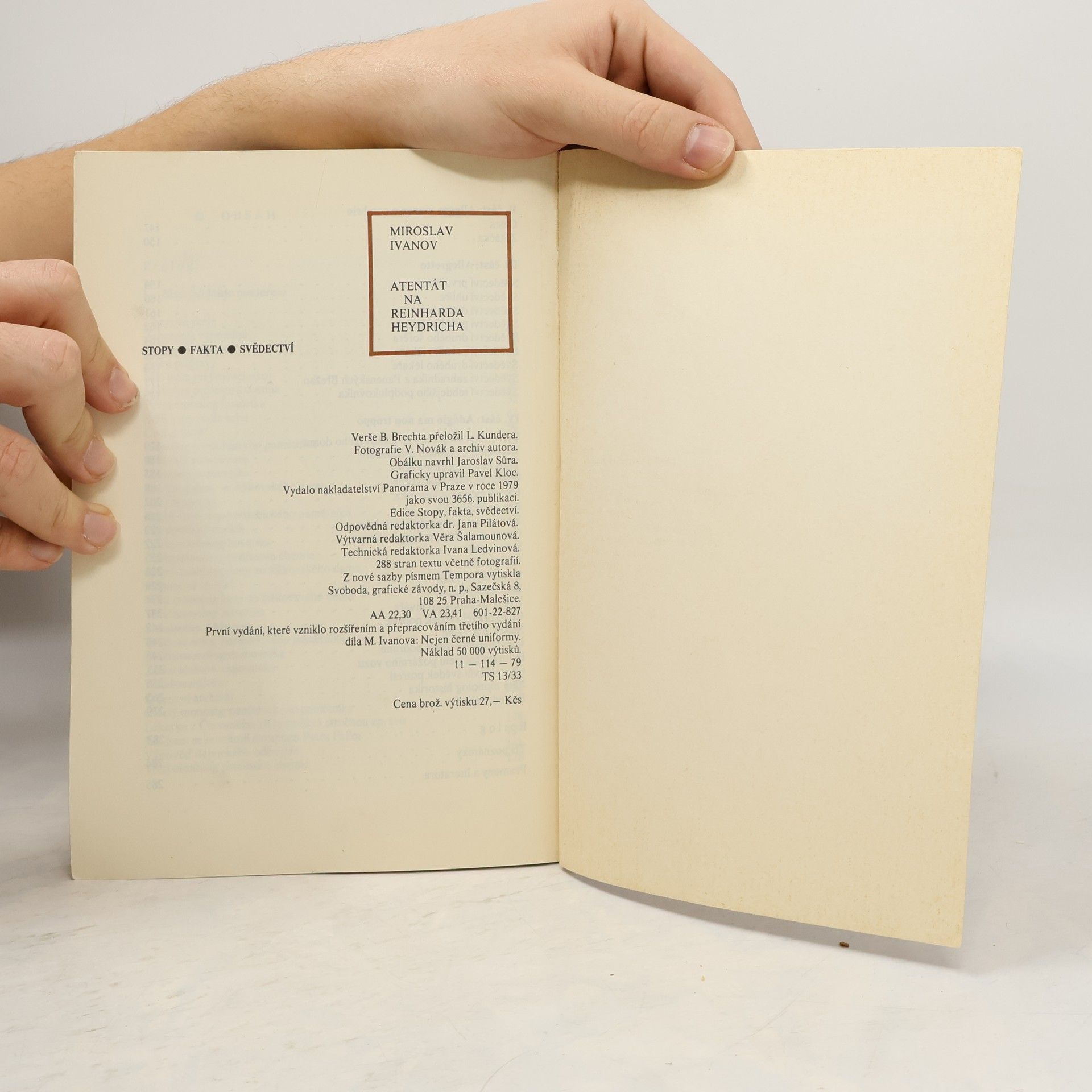 Stopy,fakta,svědectví, verše B.Brechta přeložil L.Kundera, fotografie V.Novák a archiv autora Podrobná rekonstrukce atentátu na zastupujícího říšského protektora, provedeného českými výsadkáři 27. května 1942. Kniha o hrdinném činu, který odstartoval kruté represe nacistického režimu, patří k nejčtenějším titulům našeho nejvýznamnějšího autora literatury faktu
