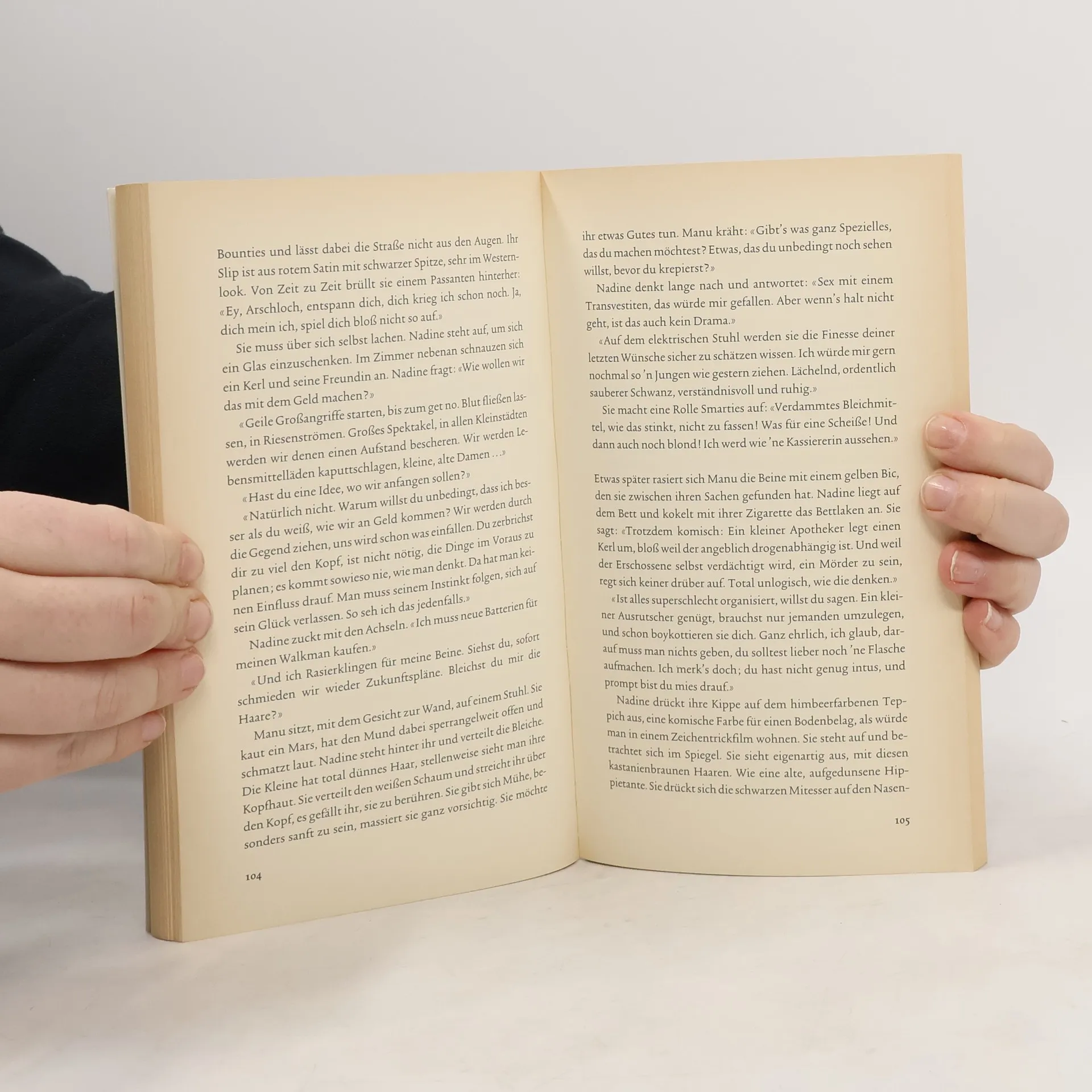 Nadine hat einen Mord begangen. Manu auch. Beide eher zufällig. Ihre gemeinsame Flucht führt sie quer durch die französische Provinz: die hyperaktive Manu, die beim kleinsten Anlass die Pistole zückt, und die stets gelassene Nadine, die nichts schrecken kann. Was als Abenteuer beginnt, als Spiel mit Sex und Drogen, eskaliert nach dem Überfall auf einen Waffenladen in Strömen von Blut.