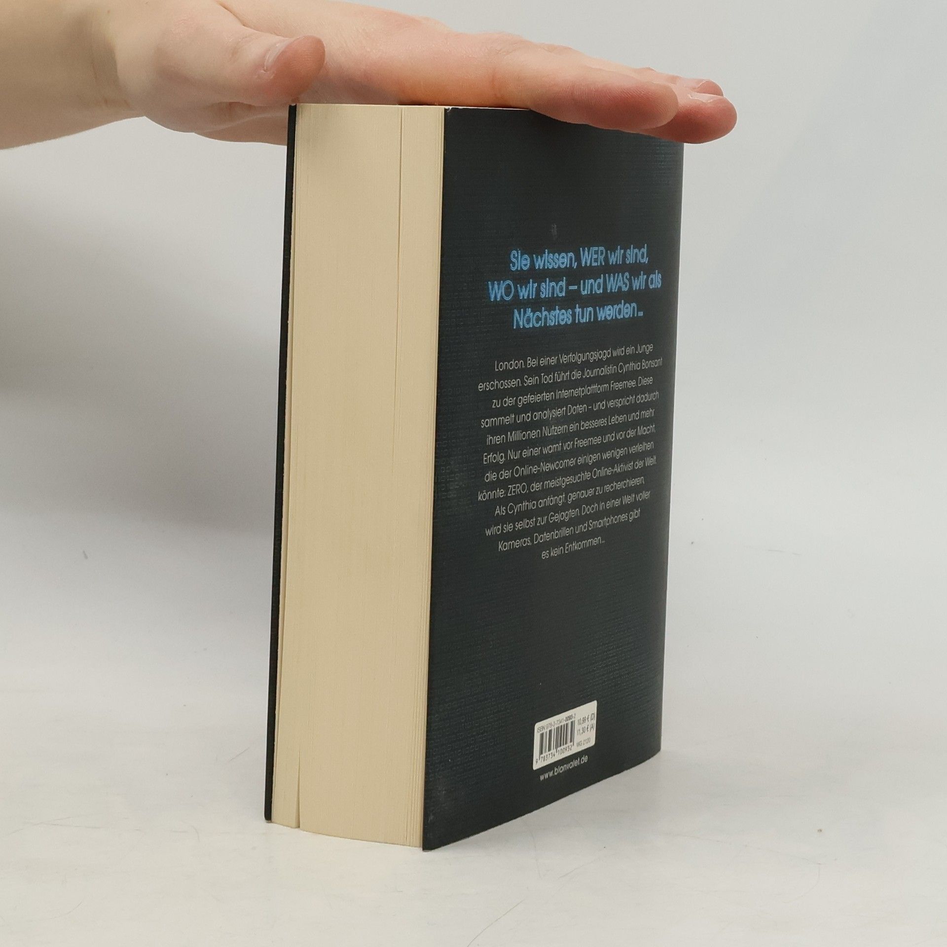 Wer sich im Netz bewegt, für den gibt es kein Entkommen. London. Bei einer Verfolgungsjagd wird ein Junge erschossen. Sein Tod führt die Journalistin Cynthia Bonsant zu der gefeierten Internetplattform Freemee. Diese sammelt und analysiert Daten – und verspricht dadurch ihren Millionen Nutzern ein besseres Leben und mehr Erfolg. Nur einer warnt vor Freemee und vor der Macht, die der Online-Newcomer einigen wenigen verleihen könnte: ZERO, der meistgesuchte Online-Aktivist der Welt. Als Cynthia anfängt, genauer zu recherchieren, wird sie selbst zur Gejagten. Doch in einer Welt voller Kameras, Datenbrillen und Smartphones kann man sich nicht verstecken …