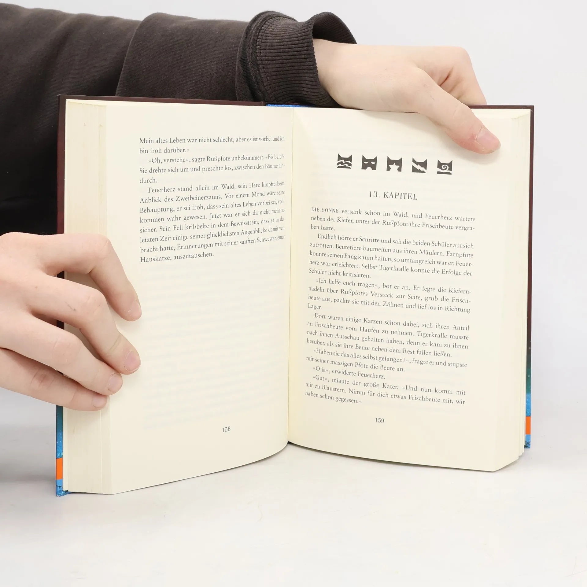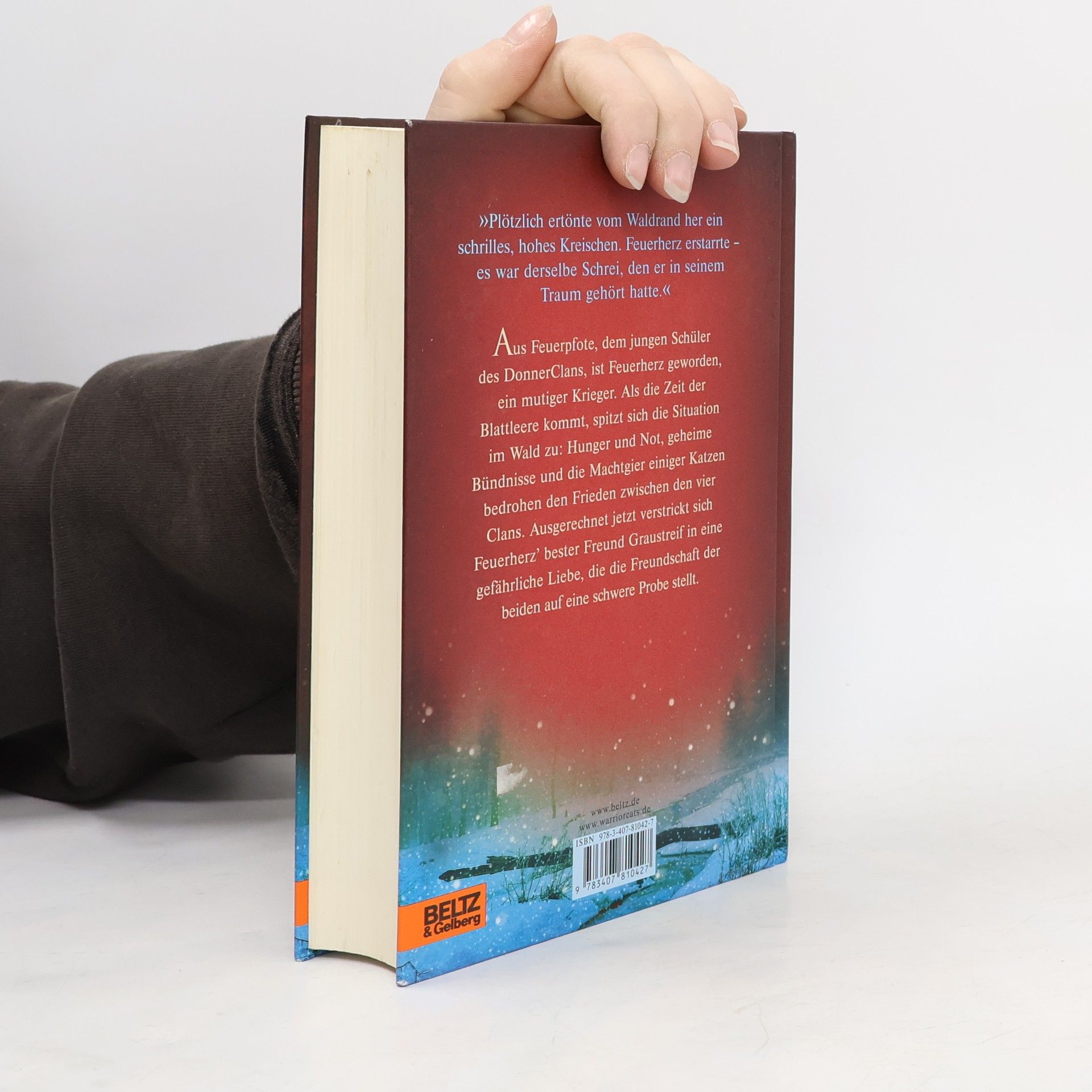 „Plötzlich ertönte vom Waldrand her ein schrilles, hohes Kreischen. Das Blut in Feuerherz’ Adern erstarrte – es war derselbe Schrei, den er in seinem Traum gehört hatte.“ Feuerherz, das ehemalige ‚Hauskätzchen’, ist ein mutiger Krieger des DonnerClans geworden. Als der Winter kommt, spitzt sich die Situation im Wald zu: Nachdem der WindClan von Katzen des SchattenClans vertrieben wurde, ist das Gleichgewicht der Clans gestört. Hunger und Not, geheime Bündnisse und die Machtgier einzelner Katzen bedrohen den Frieden im Wald. Ausgerechnet jetzt verstrickt sich Feuerherz’ bester Freund Graustreif in eine gefährliche Liebe. Als die beiden Freunde aufbrechen, um den WindClan zurückzuholen, kommt es zu einem schrecklichen Unfall …