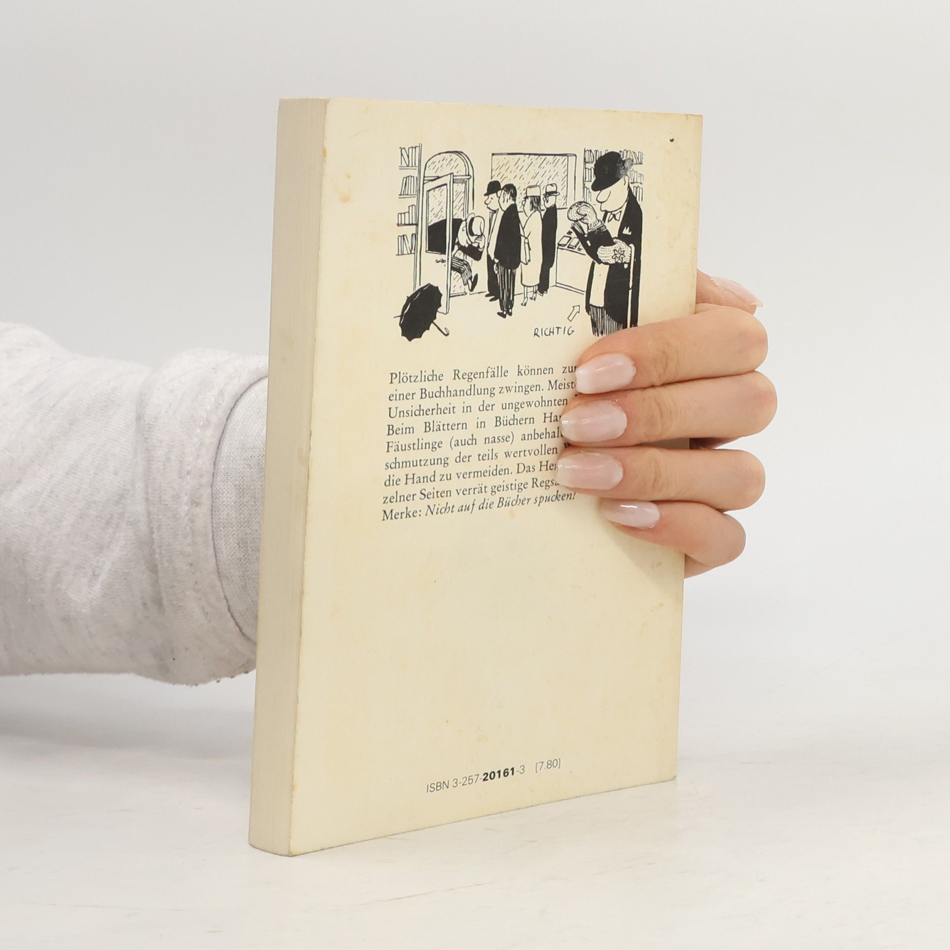Ein Klassiker des modernen Lebens. Entstanden aus Loriots Gefühl der inneren Verpflichtung, »dem Menschen von heute ein Nachschlagewerk in die Hand zu geben, das ihm auch in kritischen Situationen korrektes Verhalten ermöglicht.« Behandelt werden Bereiche wie Grund und Boden, Daheim, Das Automobil, Auf Reisen, Gesellschaftsspiele, Umgang mit Tieren und viele mehr. Ein Ratschlag zum Erwerb dieses Buches: sie fragen danach in der nächsten Buchhandlung oder drücken jetzt auf den Button In den Warenkorb.
