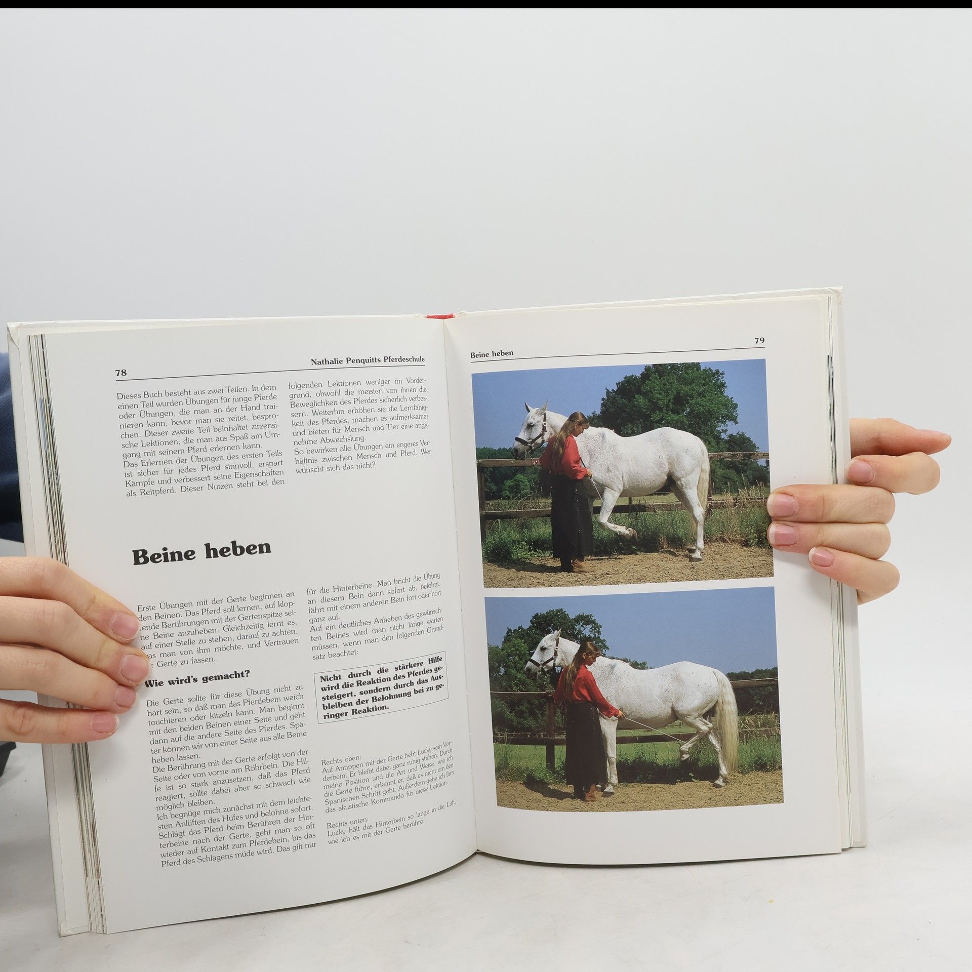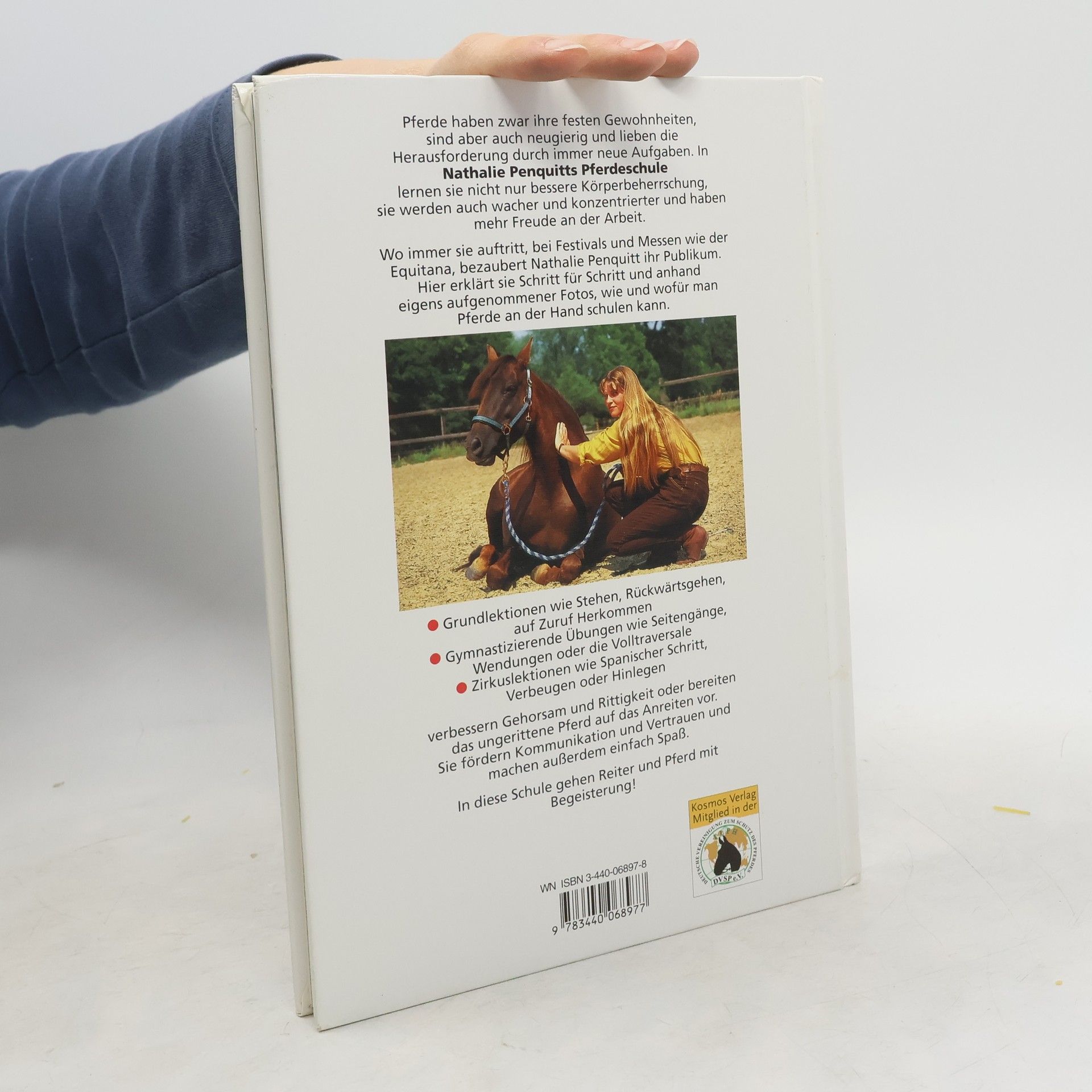 Schritt für Schritt zeigt die erfolgreiche Ausbilderin Nathalie Penquitt, wie Pferde ganz natürlich und spielerisch gymnastizierende Übungen an der Hand und Zirkuslektionen lernen. Dabei sind Vertrauen durch eindeutige Verständigung mit dem Pferd sowie positive Verstärkung der Schlüssel zum Erfolg. In dieser aktualisierten Neuausgabe finden Sie außerdem viele Zusatztipps, die hilfreiche Details für das Training enthalten. So weckt Nathalie Penquitt mit ihrer Pferdeschule die Lust auf Lernen. Die Lernfähigkeit und Auffassungsgabe des Pferdes werden gesteigert und die Beziehung zu Ihrem Pferd vertieft. Dr. Nathalie Penquitt war eine der ersten Trainerinnen, die neue Wege in der Ausbildung des Freizeitpferdes an der Hand kompetent vermittelte. Sie bietet europaweit Kurse und Seminare für Pferdefreunde und Reiter an. Auf Messen und in Pferdeshows bezaubert Nathalie Penquitt die Zuschauer mit originellen Zirkuslektionen.