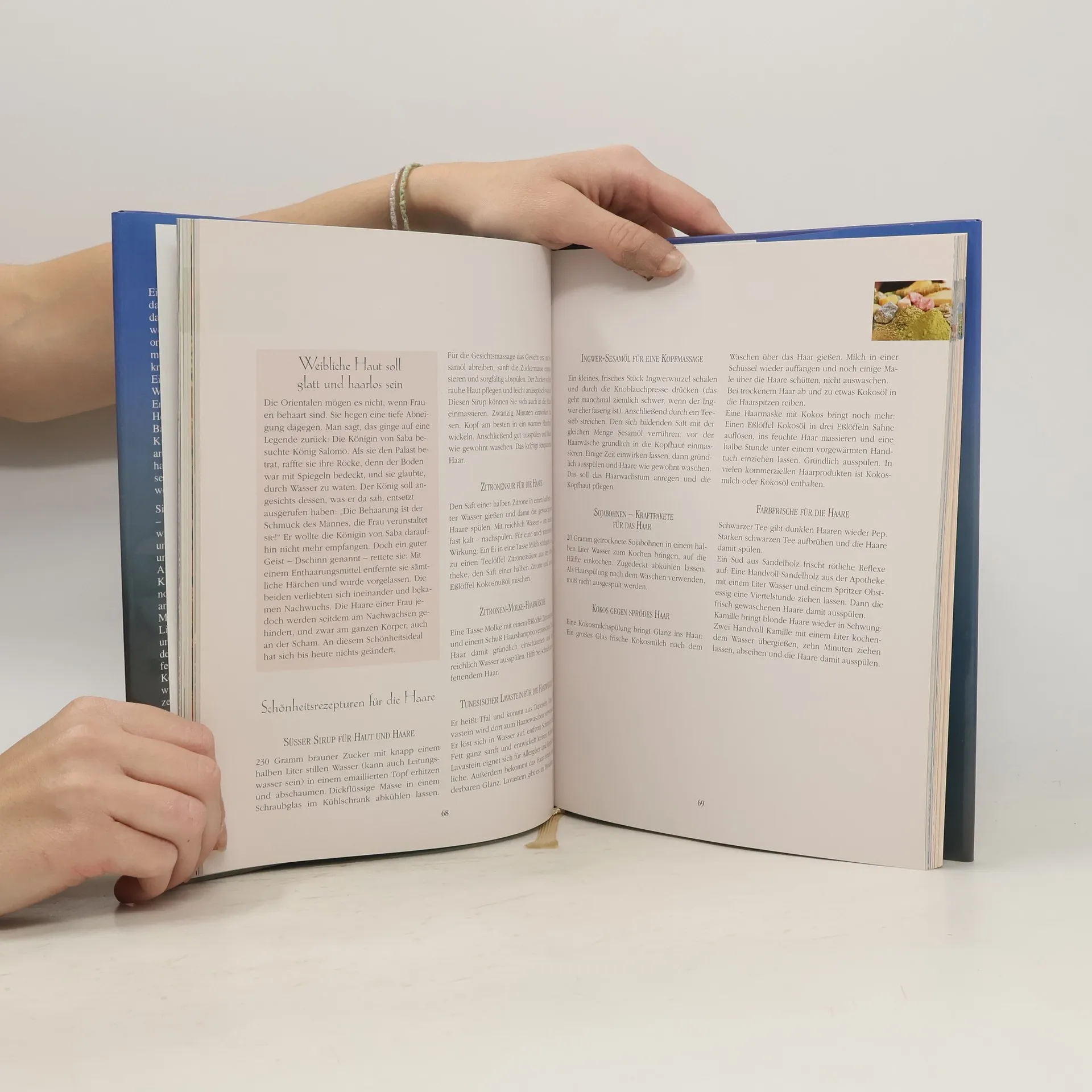 Stellt Sitten und Gebräuche, Naturheilweisen, Gewürze, Tees, orientalische Badekultur, Küche etc. sowie die entsprechenden Rezepte vor