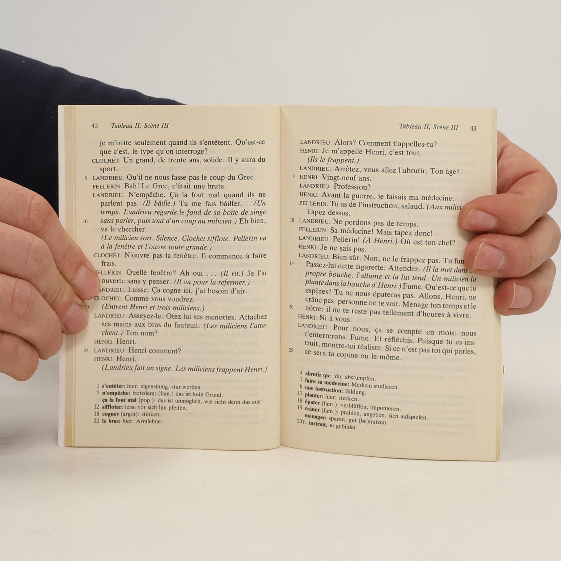 Eine Gruppe französischer Widerstandskämpfer ist von der Miliz des Pétain-Regimes gefangengenommen worden und geht nun durch die Hölle von Verhör, Folter und selbstquälerischer Gewissenserforschung. In dieser Konstellation hat Sartre 1949 seine Auseinandersetzung mit Résistance und Kollaboration auf die Bühne gebracht - darüber hinaus aber auch den zentralen Punkt seiner Existenzphilosophie: dass das Individiuum der Notwendigkeit der Entscheidung nie enthoben ist. Ungekürzte und unbearbeitete Textausgabe in der Originalsprache, mit Übersetzungen schwieriger Wörter am Fuß jeder Seite, Nachwort und Literaturhinweisen.