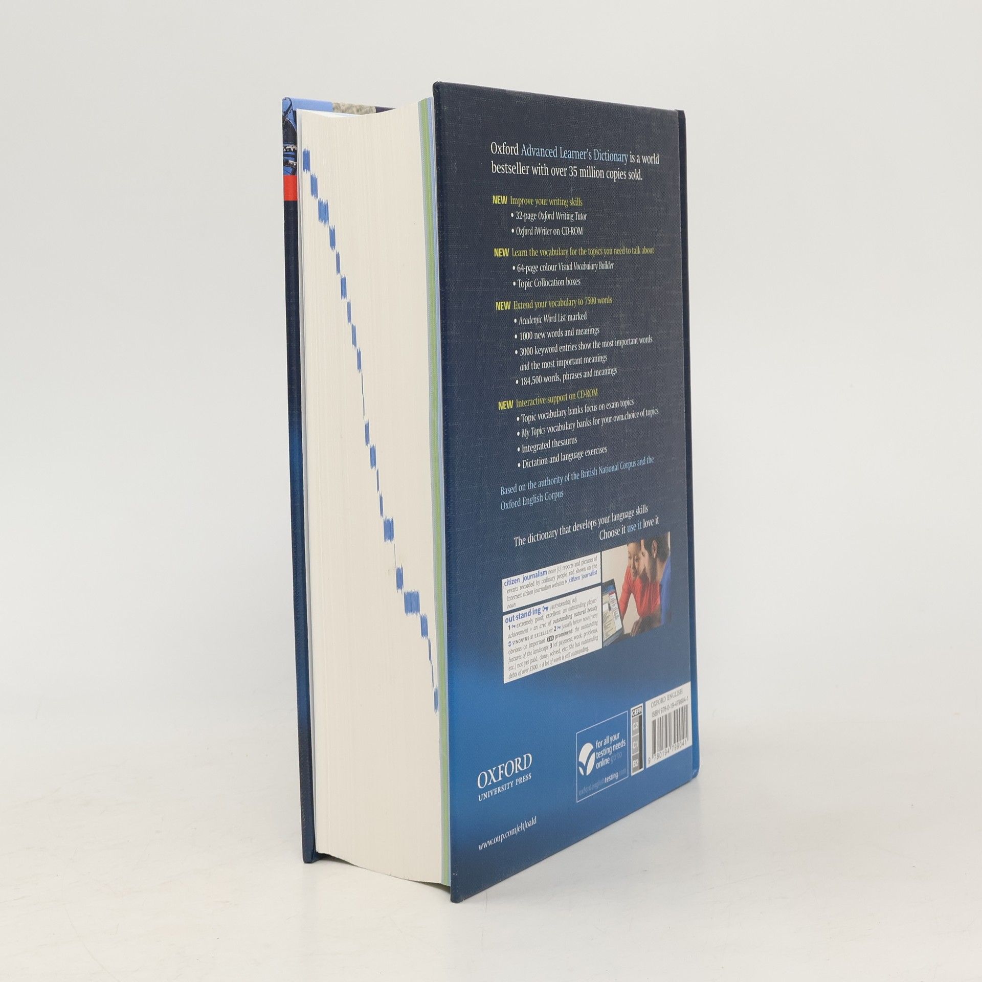 The Oxford Advanced Learner's Dictionary gives more help and more support than any other dictionary at this level. It focuses on learners' need to understand and use words correctly, and to develop their core language skills. The 8th edition features a new interactive Oxford iWriter and a new 32- page Oxford Writing Tutor, specifically designed to improve writing skills. NEW Oxford iWriter and Oxford Writing Tutor: Teachers and students around the world have told us how difficult it is towrite well in English. Now students can learn how to structure their essays, how to write different types of essays and presentations, and how to write formal English.