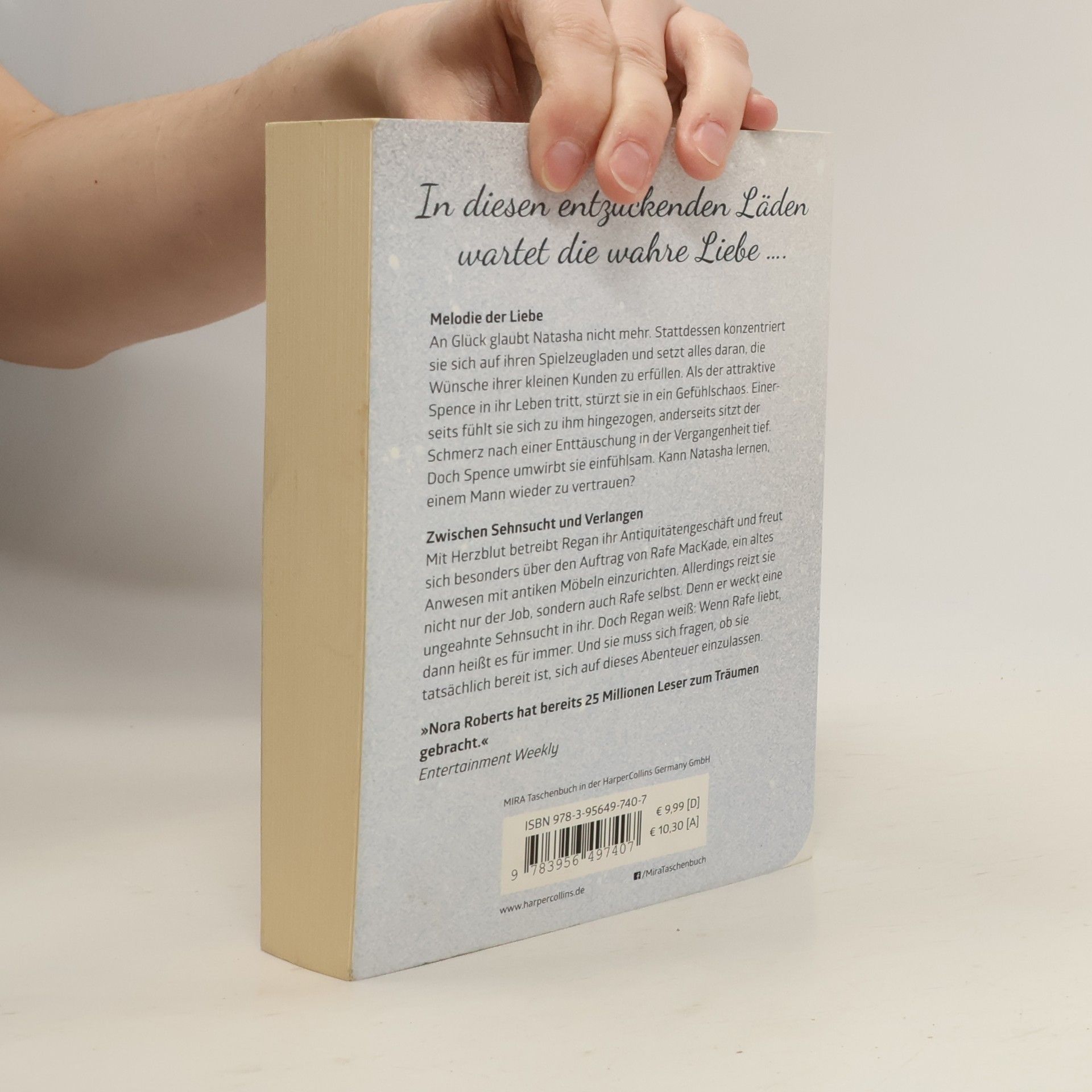 Melodie der Liebe An Glück glaubt Natasha nicht mehr. Stattdessen konzentriert sie sich auf ihren Spielzeugladen und setzt alles daran, die Wünsche ihrer kleinen Kunden zu erfüllen. Als der attraktive Spence in ihr Leben tritt, stürzt sie in ein Gefühlschaos. Einerseits fühlt sie sich zu ihm hingezogen, anderseits sitzt der Schmerz nach einer Enttäuschung in der Vergangenheit tief. Doch Spence umwirbt sie einfühlsam. Kann Natasha lernen, einem Mann wieder zu vertrauen? Zwischen Sehnsucht und Verlangen Mit Herzblut betreibt Regan ihr Antiquitätengeschäft und freut sie sich besonders über den Auftrag von Rafe MacKade, ein altes Anwesen mit antiken Möbeln einzurichten. Allerdings reizt sie nicht nur der Job, sondern auch Rafe selbst. Denn er weckt eine ungeahnte Sehnsucht in ihr. Doch Regan weiß: Wenn Rafe liebt, dann heißt es für immer. Und sie muss sich fragen, ob sie tatsächlich bereit ist, sich auf dieses Abenteuer einzulassen. „Nora Roberts kennt das Rezept für großartige Liebesromane!“ Romantic Times „Nora Roberts hat bereits 25 Millionen Leser zum Träumen gebracht.“ Entertainment Weekly