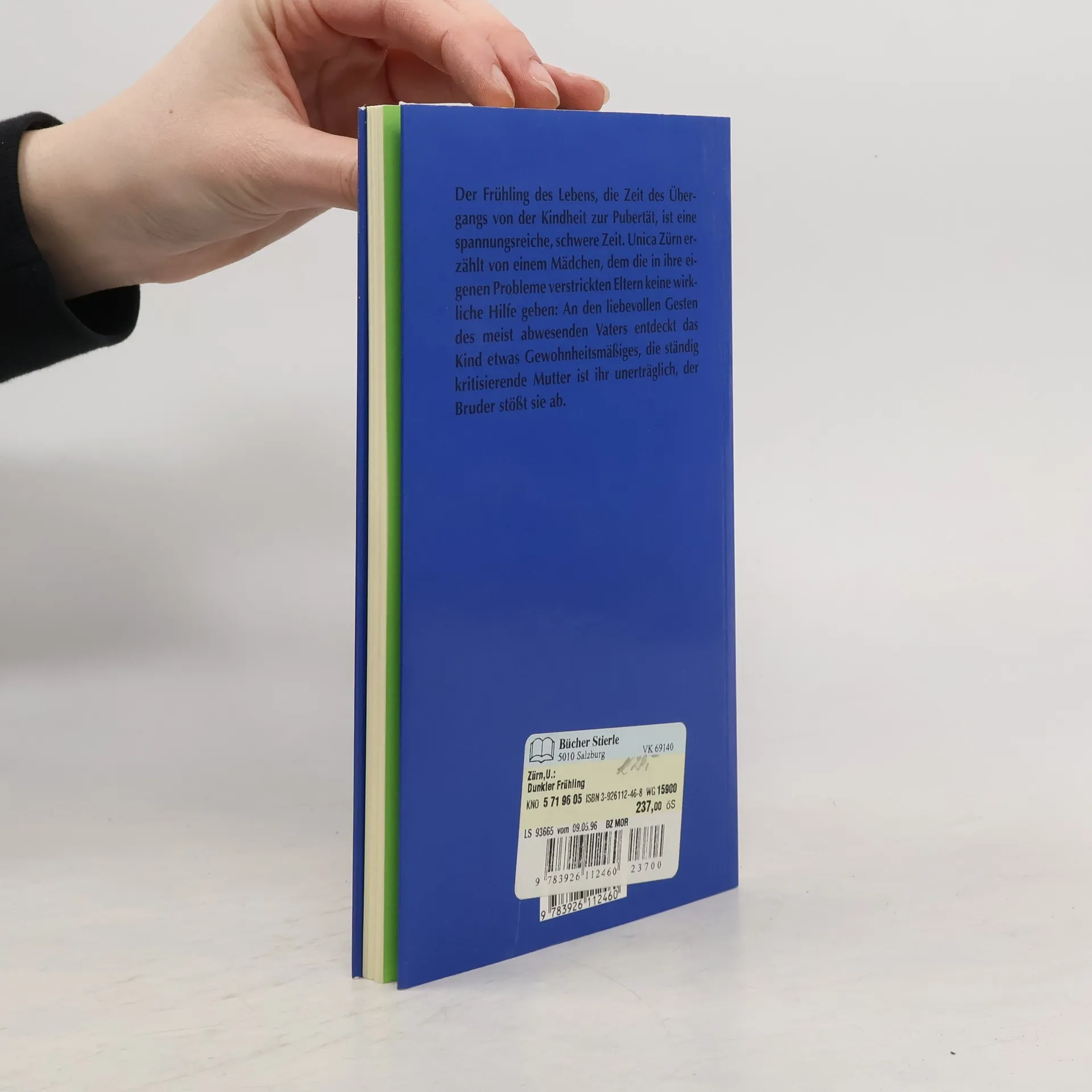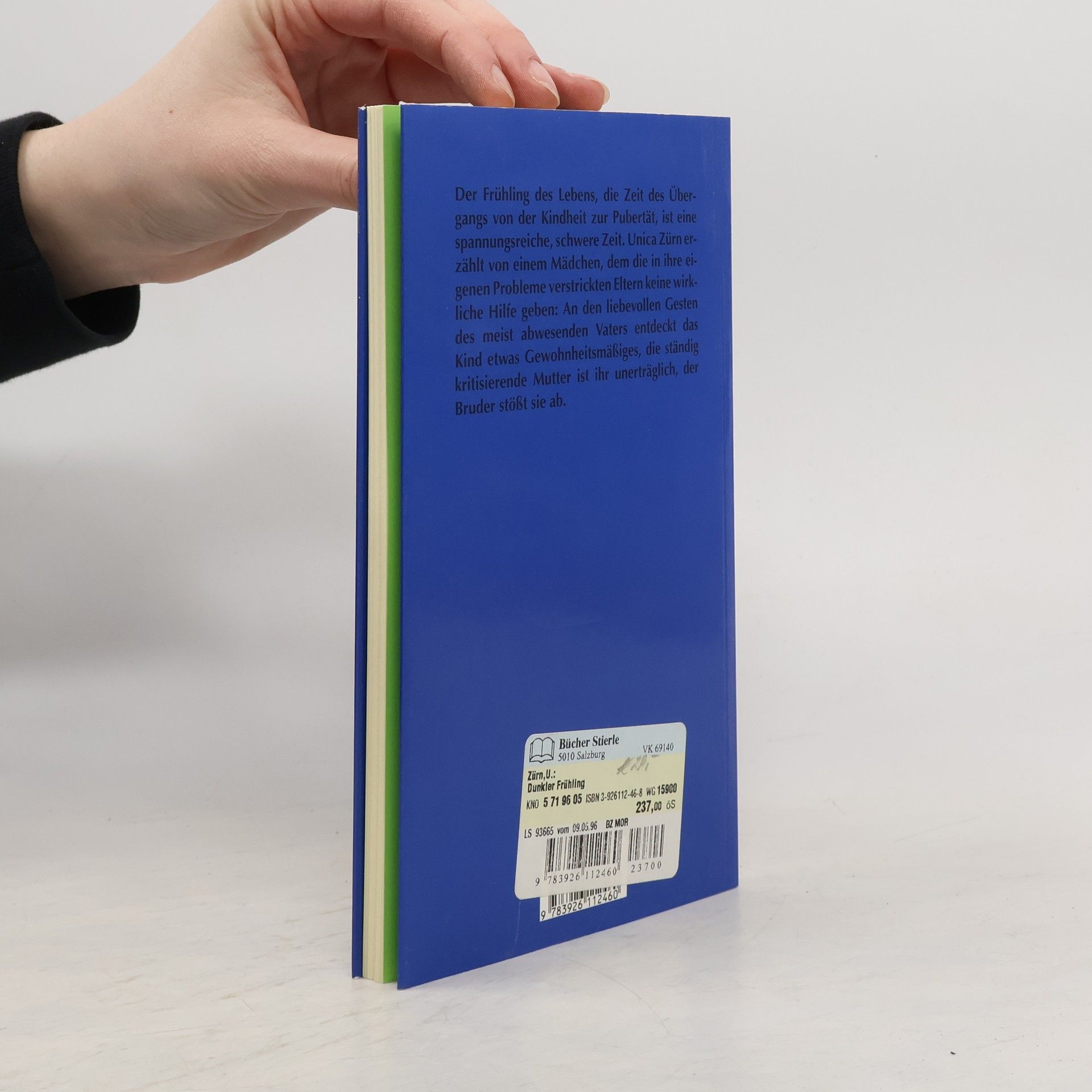Dunkler Frühling ist die beklemmende Studie eines pubertierenden Mädchens auf dem Weg ins Erwachsensein. Die stets Kritik übende Mutter empfindet die Heranwachsende als feindlich, den brutal egoistischen Bruder verabscheut sie und in den zärtlichen Gesten des meist abwesenden Vaters entdeckt sie etwas entmutigend Gewohnheitsmäßiges. Alle ihre Träume münden in Enttäuschung und Schwermut. Unverstanden von den Eltern steuert das Leben des Mädchens auf eine Katastrophe zu. Dicht und bewundernswert feinfühlig gilt dieses zeitlos aktuelle letzte Werk von Unica Zürn als Kult-Roman!