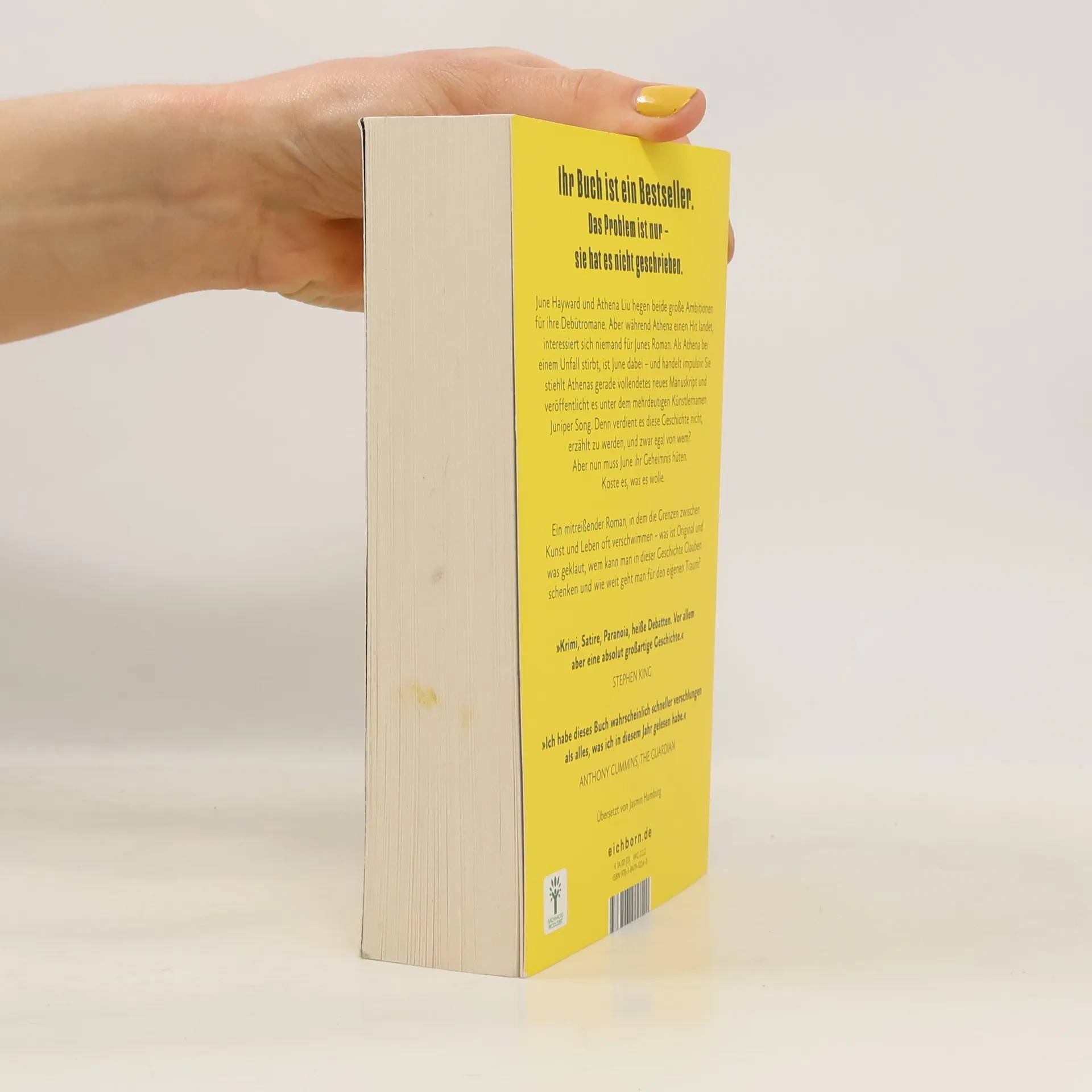 »Krimi, Satire, Paranoia, heiße Debatten. Vor allem aber eine absolut großartige Geschichte.« STEPHEN KING »Ich habe dieses Buch wahrscheinlich schneller verschlungen als alles, was ich in diesem Jahr gelesen habe.« ANTHONY CUMMINS, THE GUARDIAN June Hayward und Athena Liu könnten beide aufstrebende Stars der Literaturszene sein. Doch während die chinesisch-amerikanische Autorin Athena für ihre Romane gefeiert wird, fristet June ein Dasein im Abseits. Niemand interessiert sich für Geschichten „ganz normaler“ weißer Mädchen, so sieht es June zumindest. Als June Zeugin wird, wie Athena bei einem Unfall stirbt, stiehlt sie im Affekt Athenas neuestes, gerade vollendetes Manuskript, einen Roman über die Heldentaten chinesischer Arbeiter während des Ersten Weltkriegs. June überarbeitet das Werk und veröffentlicht es unter ihrem neuen Künstlernamen Juniper Song. Denn verdient es dieses Stück Geschichte nicht, erzählt zu werden, und zwar egal von wem? Aber nun muss June ihr Geheimnis hüten. Und herausfinden, wie weit sie dafür gehen will.