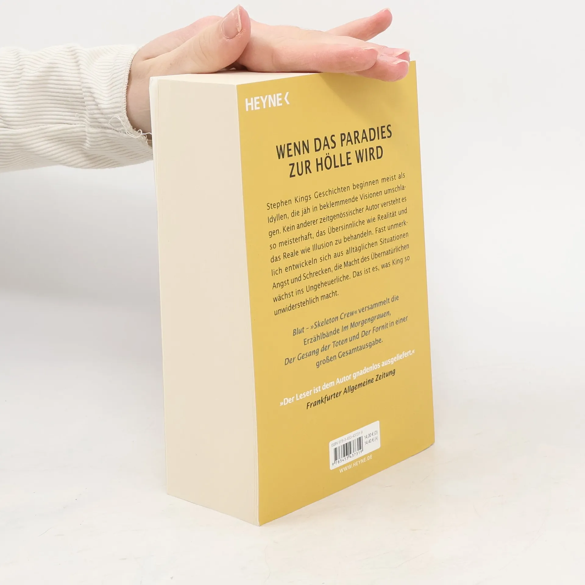Sammelband mit über 700 Seiten unheimlichem Lesevergnügen Stephen Kings Erzählband vereint 19 Short Storys und die Horrornovelle »Der Nebel«, die Vorlage für den gleichnamigen Kinofilm von Frank Darabont (Die Verurteilten, The Green Mile) . So unterschiedlich die Geschichten in diesem Band auf den ersten Blick erscheinen – sie alle demonstrieren, wie Stephen King es schafft, mit verborgenen menschlichen Ängsten zu spielen. Blut versammelt die drei Einzelbände Im Morgengrauen, Der Gesang der Toten und Der Fornit .