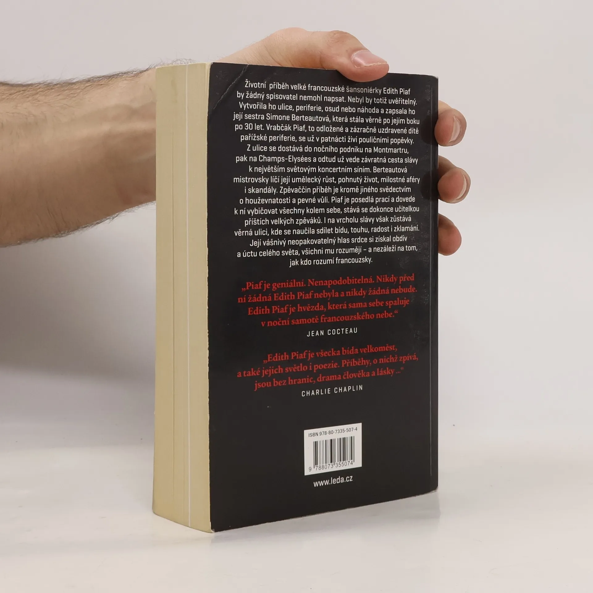 Poutavé svědectví o životě Edith Piaf z pera její o dva roky mladší nevlastní sestry, také zpěvačky Simone Berteautové. Simone Berteautová popisuje závratný umělecký vzestup Edith, s níž se znala od svých třinácti let a už se pak nikdy neopustily. Měly společného otce – Louise Gassiona, takže vlastním jménem byla Edith Piaf Edith Giovanna Gassionová. Piaf je přezdívka, znamená česky „vrabčák“. S. Berteautová sleduje uměleckou kariéru Edith až do jejího předčasného tragického konce. Pro svou bezprostřednost a důvěrnou znalost prostředí jde o svědectví zcela unikátní.