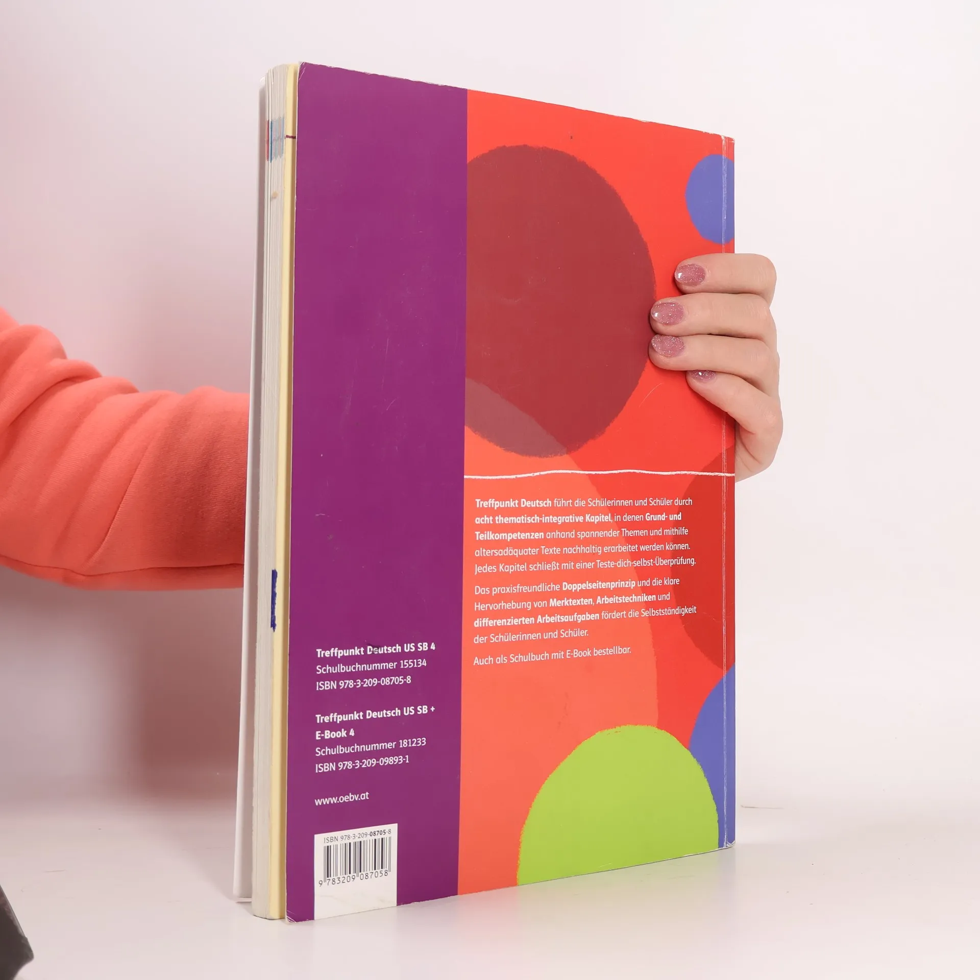 Die Bearbeitung des erfolgreichen Lehrwerks Treffpunkt Deutsch besticht durch motivierende Gestaltung und klare Strukturen. Der übersichtliche Wegweiser durchs Schuljahr führt in acht altersadäquaten Themen-Kapiteln zu Schularbeiten und Sprachbetrachtung hin. Moderne Methoden lassen Schülerinnen und Schülern die Sprache, ihre Regeln und Anwednungen auf vielfältige Weise begreifen. Tipps und Merkkästen erkleichern die Erarbeitung der Inhalte, Kompetenztests überprüfen Bildungsstandards. Abwechslungsreiche Übungen im Arbeitsheft, das Leseheft sowie weitere Trainingsbände runden das Angebot ab. Bei diesem Schulbuch handelt es sich um eine Kombination von gedrucktem Buch und E-Book.