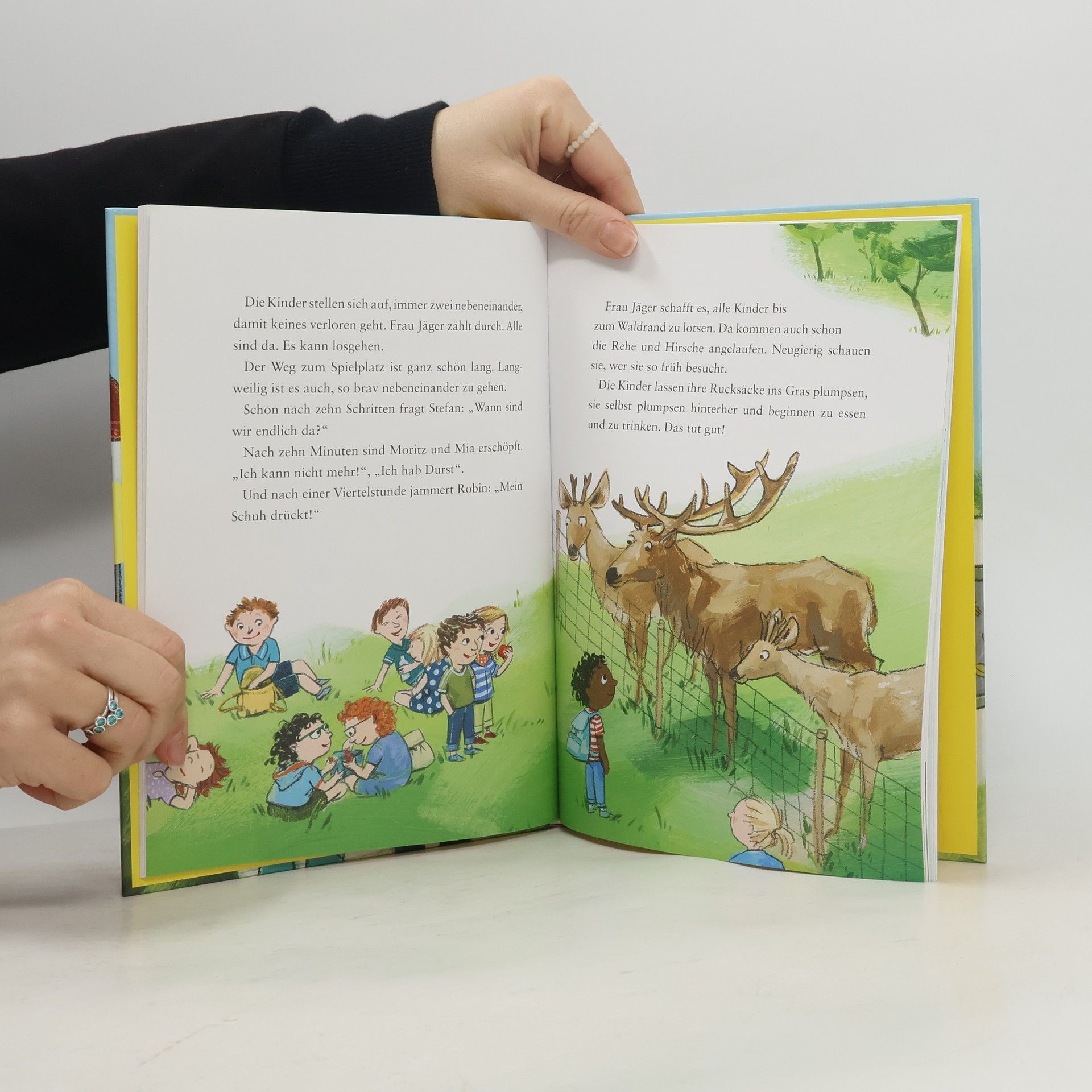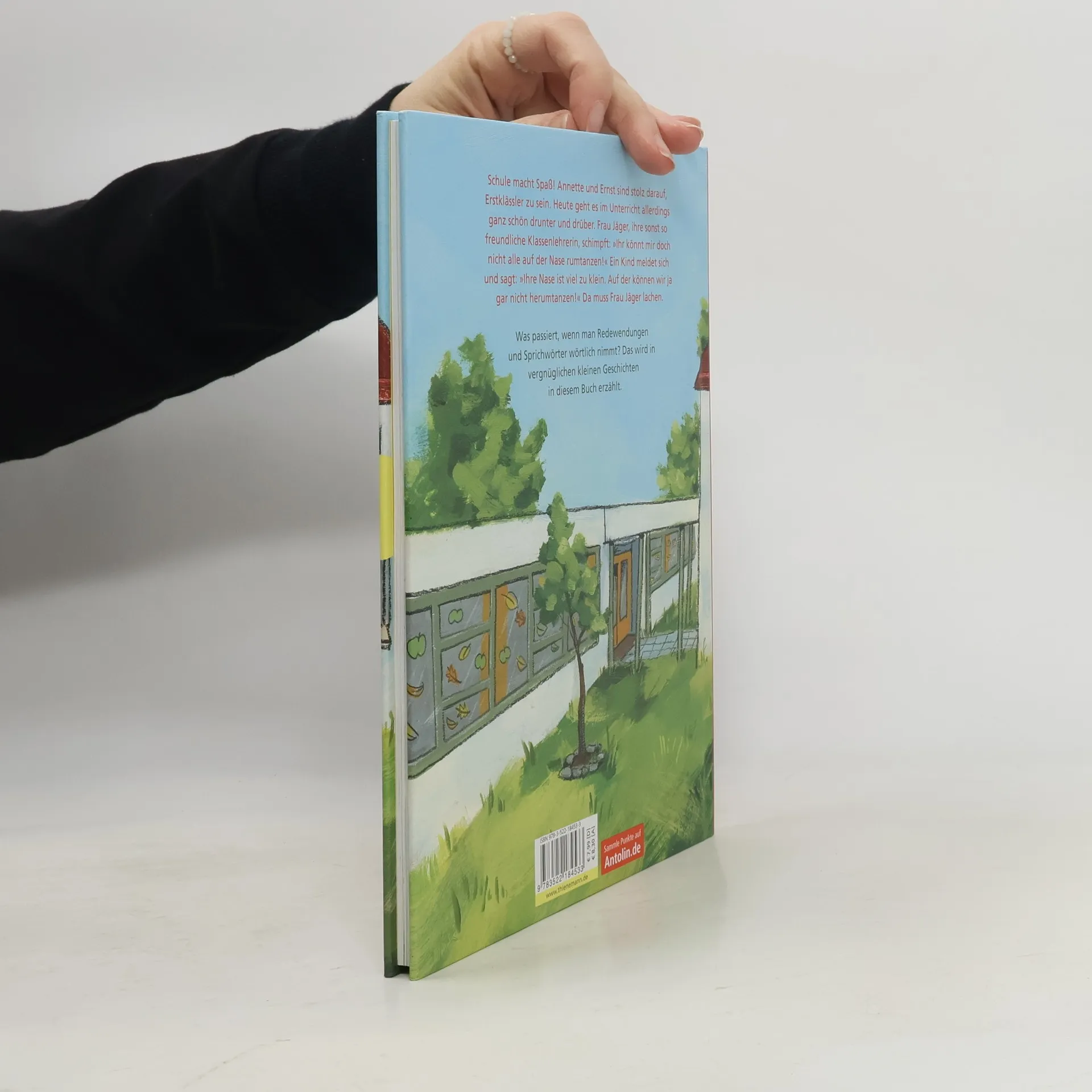 Schule macht Spaß! Annette und Ernst sind stolz darauf, Erstklässler zu sein. Heute geht es im Unterricht allerdings ganz schön drunter und drüber. Frau Jäger, ihre sonst so freundliche Klassenlehrerin, schimpft: „Ihr könnt mir doch nicht alle auf der Nase rumtanzen!“ Ein Kind meldet sich und sagt: „Ihre Nase ist viel zu klein. Auf der können wir ja gar nicht herumtanzen!“ Da muss Frau Jäger lachen. Was passiert, wenn man Redewendungen und Sprichwörter wörtlich nimmt? Das wird in vergnüglichen kleinen Geschichten in diesem Buch erzählt. Ein perfektes Lesevergnügen für Schulanfänger!