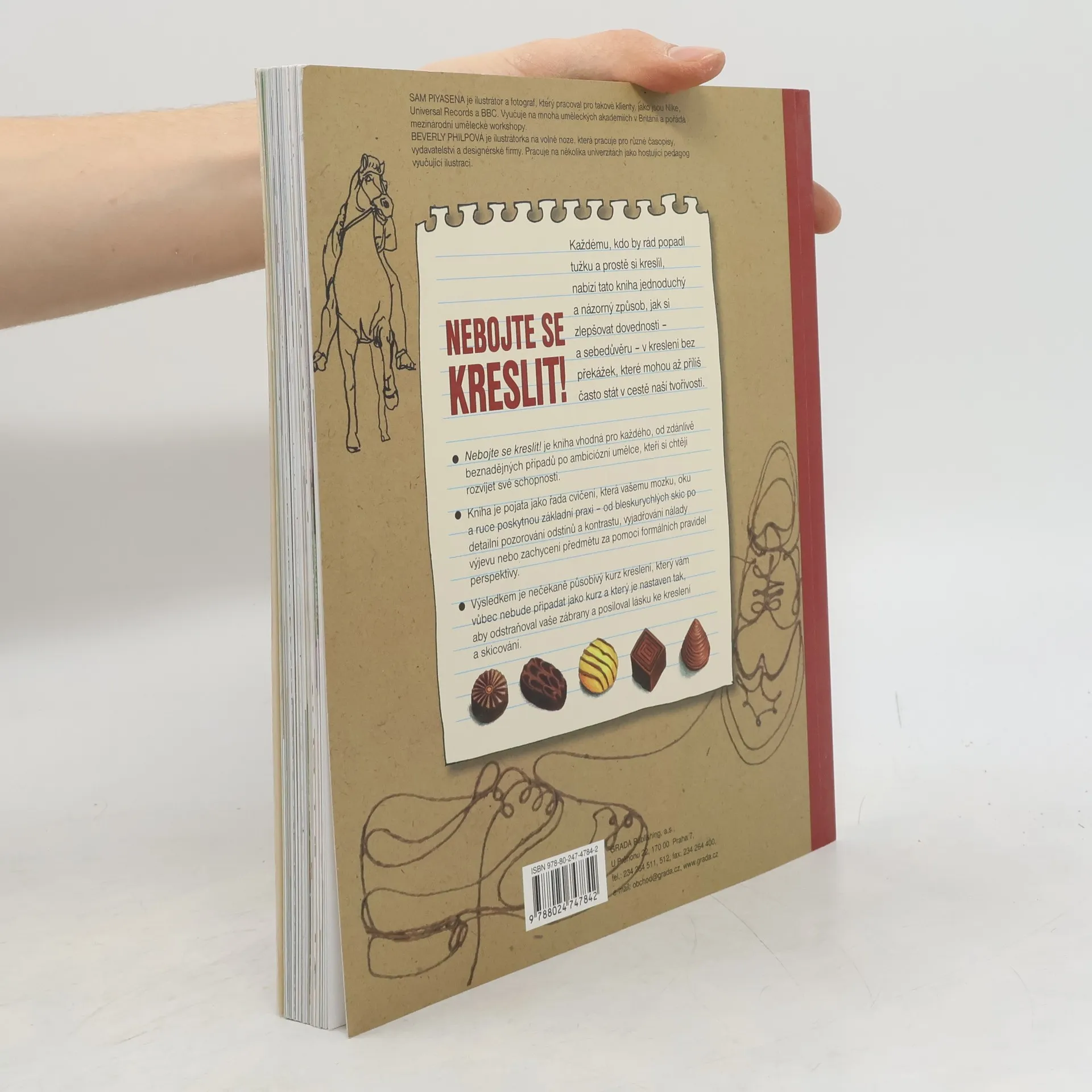 Nejprve prozkoumáme čáry a tahy, které tvoří jádro samotného kreslení. Poté se podíváme na světlo a stín, které dodají vašim kresbám tvar. V následující kapitole se pak budeme zabývat často poměrně ošidným úkolem ztvárnit na plošném obrázku trojrozměrné tvary. Pomůžeme vám vnést do kreseb dojem pohybu a ukážeme vám možnosti používání textur a vzorů. Poslední kapitola vás vybídne, abyste zpochybňovali vlastní předsudky v oblasti kreslení a posílili vlastního tvůrčího ducha. A co je nejpodstatnější, tato kniha vám pomůže rozvíjet a vyjadřovat city a vášně prostřednictvím kresby. Každému, kdo by rád popadl tužku a prostě si kreslil, nabízí tato kniha jednoduchý a názorný způsob, jak si zlepšovat dovednosti – a sebedůvěru – v kreslení bez překážek, které mohou až příliš často stát v cestě naší tvořivosti.Nebojte se kreslit! je kniha vhodná pro každého, od zdánlivě beznadějných případů po ambiciózní umělce, kteří si chtějí rozvíjet své schopnosti. Kniha je pojata jako řada cvičení, která vašemu mozku, oku a ruce poskytnou základní praxi – od bleskurychlých skic po detailní pozorování odstínů a kontrastu, vyjadřování nálady výjevu nebo zachycení předmětu za pomoci formálních pravidel perspektivy. Výsledkem je nečekaně působivý kurz kreslení, který vám vůbec nebude připadat jako kurz a který je nastaven tak, aby odstraňoval vaše zábrany a posiloval lásku ke kreslení a skicování.
