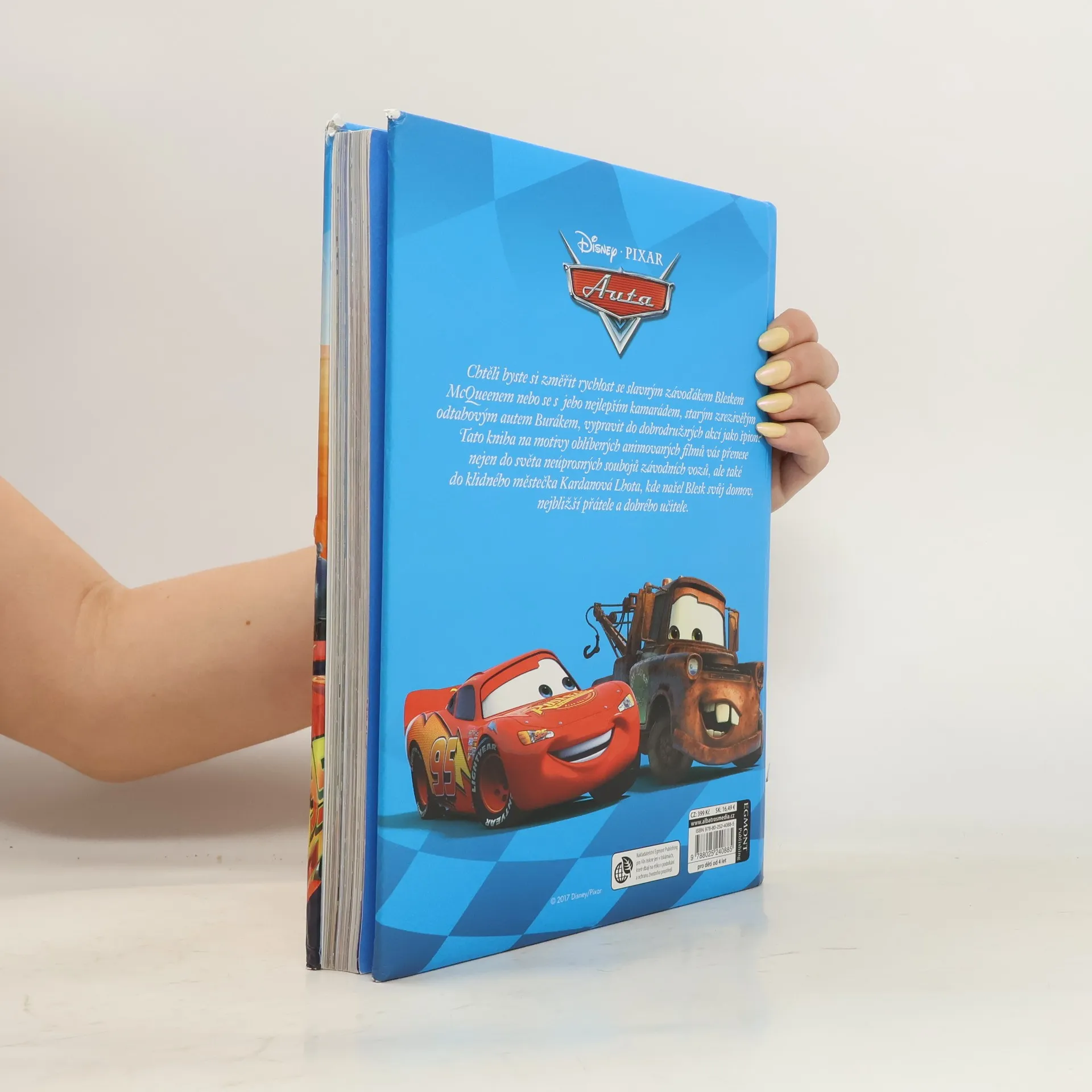 Skvělé příběhy kamarádů na kolech ve velké obrázkové knížce! Chtěli byste si změřit rychlost se slavným závoďákem Bleskem McQueenem nebo se vypravit s jeho nejlepším kamarádem, odtahovým autem Burákem, do dobrodružné akce jako špioni? Tato kniha na motivy oblíbených animovaných filmů vás přenese nejen do světa závodění na rychlých kolech, ale také do klidného městečka Kardanová Lhota, kde našel Blesk svůj domov, nejbližší přátele a dobrého učitele.