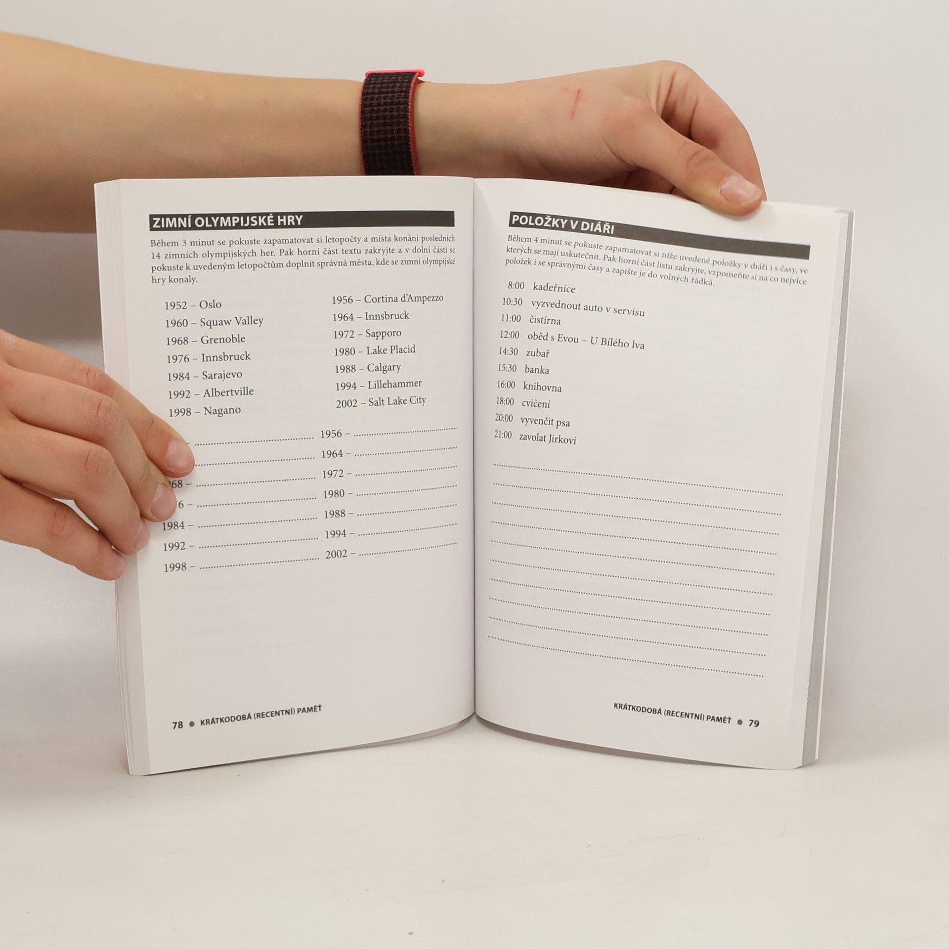 Asi každý má někdy pocit, že čím dál víc zapomíná a paměť už není, co bývala. Kniha nabízí možnost, jak si ji stále udržovat v kondici. Zahrnuje testy na různá témata, které čtenář může samostatně vyplnit a podle klíče zkontrolovat správnost řešení a úroveň svých znalostí. Kapitoly jsou připraveny podle toho, která kognitivní funkce je převážně procvičována. Úlohy na různá témata jsou jednoduché i náročnější. Někomu jsou bližší názvy filmů nebo přísloví, jiný se vyzná víc v historii nebo v druzích piva, můžeme oživit znalosti ze zeměpisu nebo z fyziky a ověřit si logické či matematické schopnosti. Kniha obsahuje také stručný teoretický úvod o kognitivních funkcích a návody, jak si uchovat mozek co nejdéle svěží. Je vhodná i pro seniory, ale hlavně pro každého, kdo má zájem o trénink své paměti.